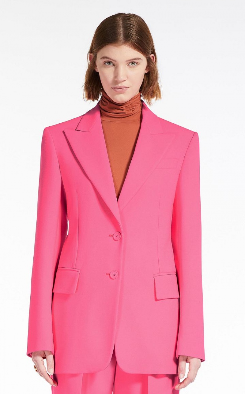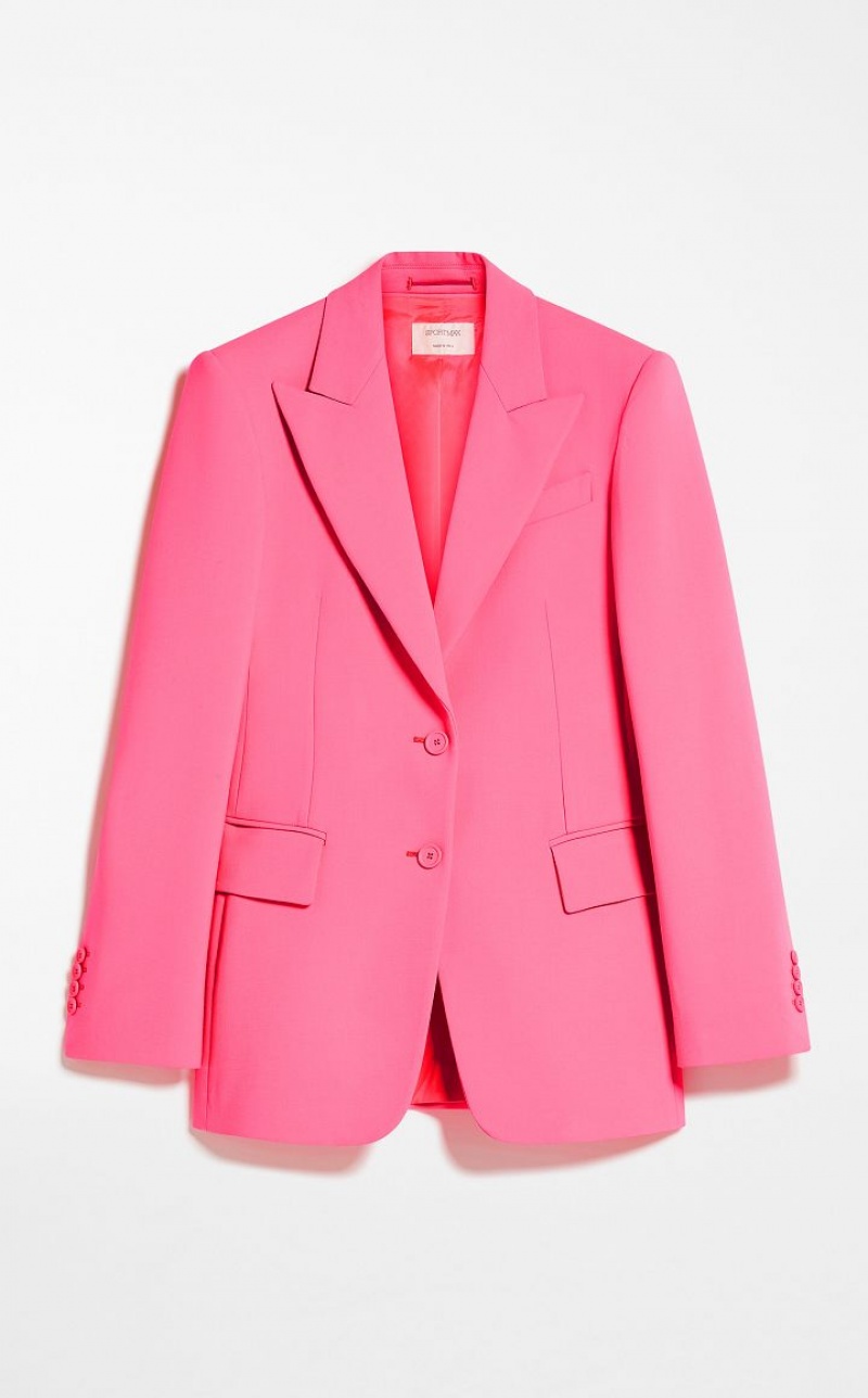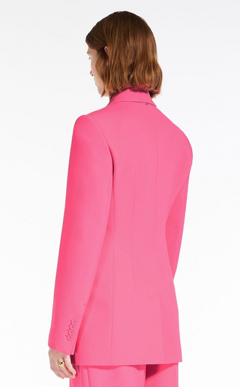 Blazer made of stretch wool, with a tailored construction and slim fit. The neckline is defined by peak lapels while the sides are completed by flap and welt pockets. The front and back darts define a feminine, slinky silhouette. Centre-back vent. Garment length: 78 cm.