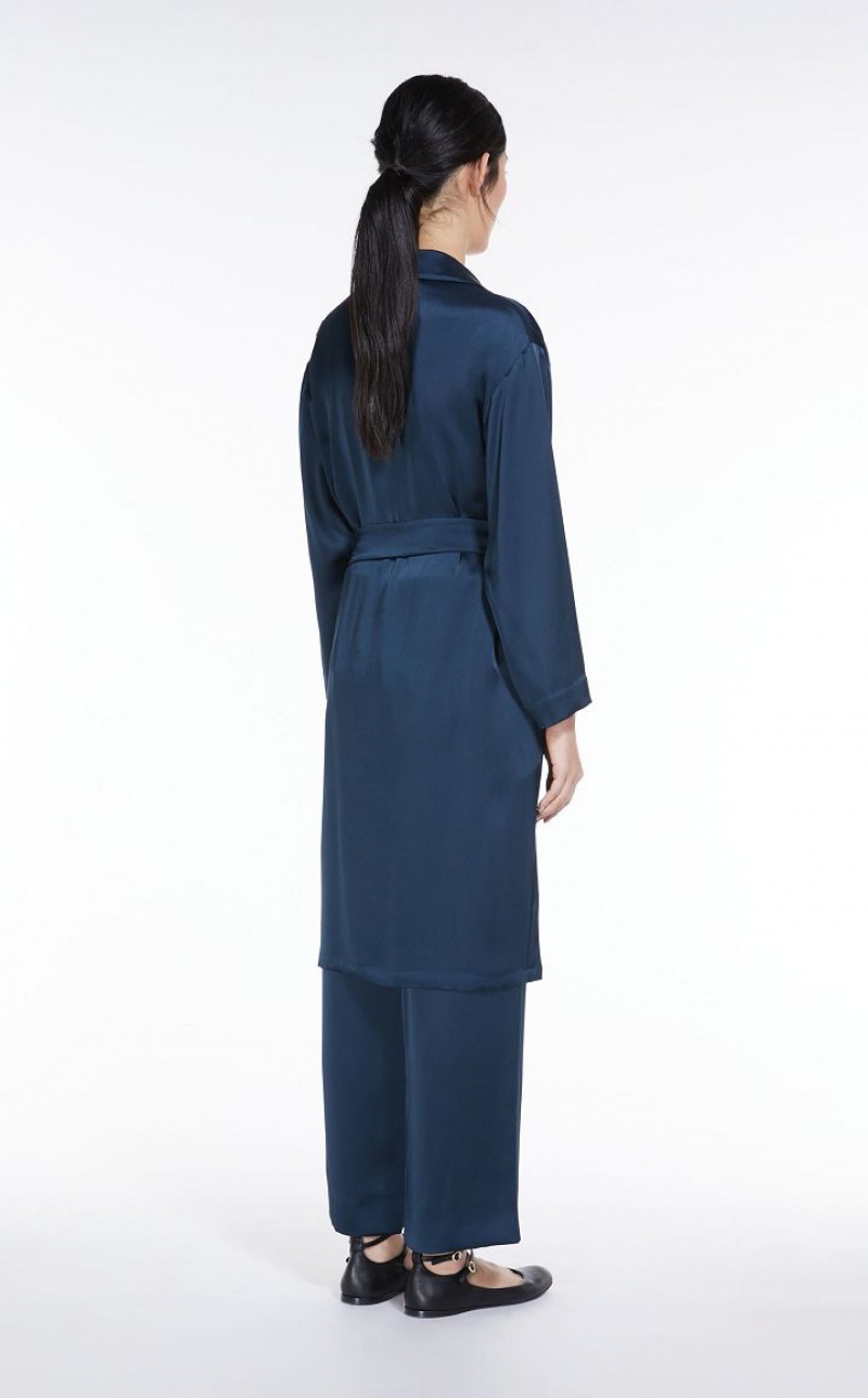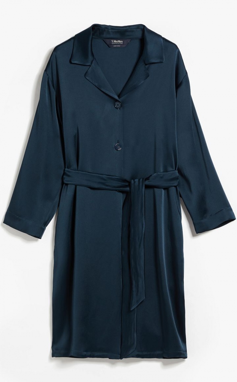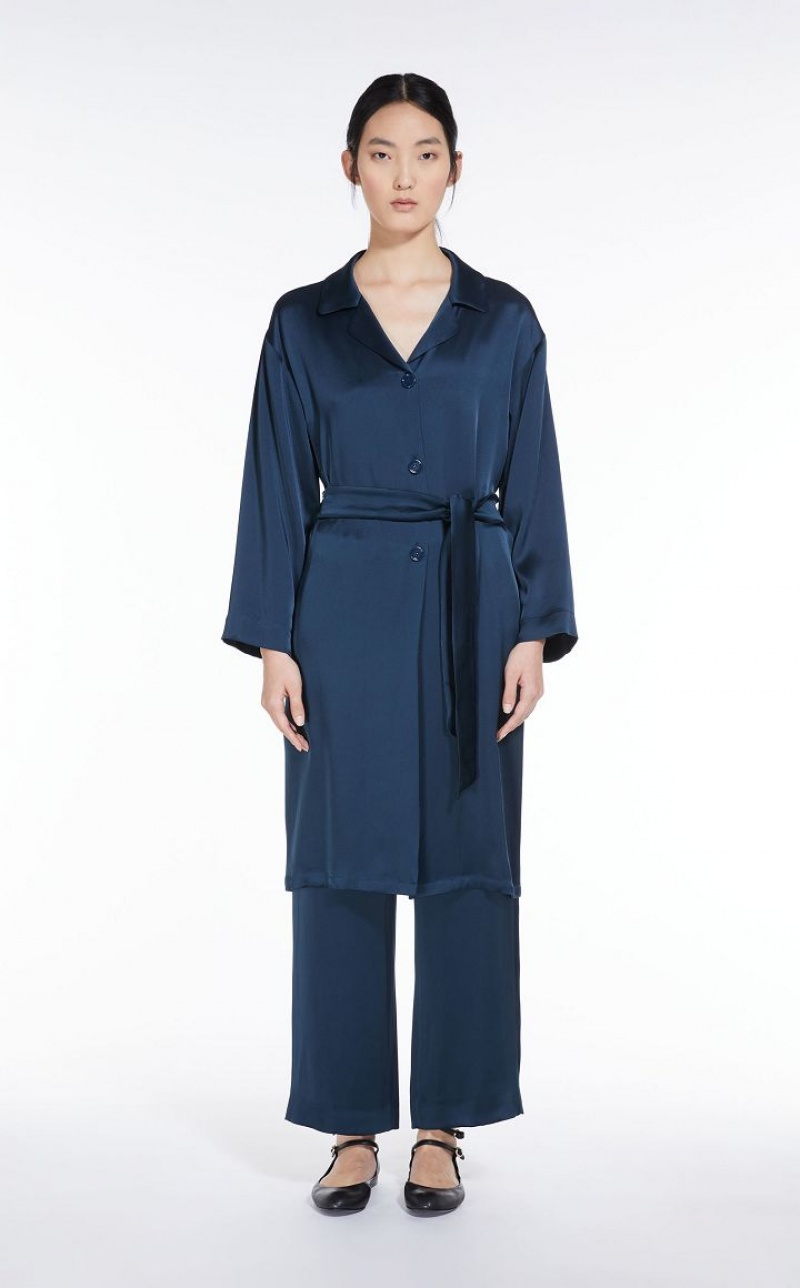 Long shirt in viscose-blend satin fabric featuring a lapel collar and in-seam side pockets. Ideal for also wearing as a duster coat with the silhouette-accentuating matching belt. 3-button front fastening. Length: 100 cm.
