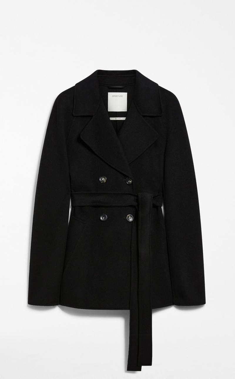 Double-breasted robe-style jacket, cut to a length below the hips. Made of wool and cashmere double-face cloth with a soft, warm feel, it features wide lapels, large welt pockets and raglan sleeves. Wide belt in fabric to pull in at the waistline.