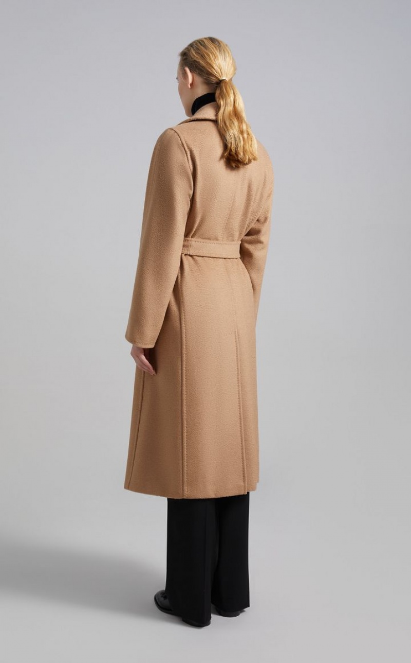 Since 1998, the Manuela wrap coat in pure camel hair designed by Anne-Marie Beretta has been telling the story of Max Mara. A story about a passion for quality and laid-back luxury to wear every day. Now considered an icon, the style transcends the seasons to become timeless. - Made of pure zibeline camel hair drap - Straight cut - Finished with tailored binding - Wide lapel collar with double-use button - Shirt-style armholes with kimono sleeves - Inset pockets in the side slits - Matching belt - Branded lining - Length: 115 cm / 45 inches