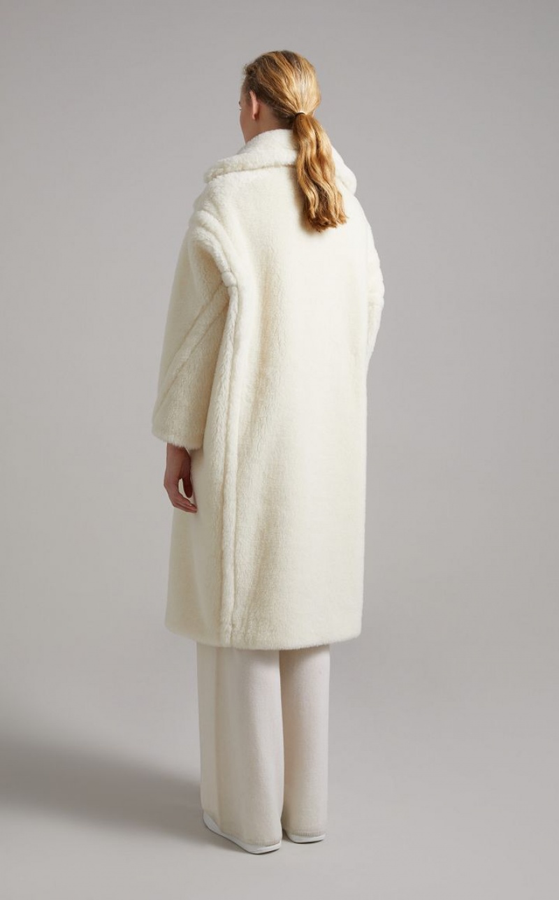 Designed in 2013, the Teddy Bear Coat was inspired by an archival garment from the ’80s and immediately became an it-coat. Stars and influencers loved its perfect alchemic blend of glamour and playfulness. Its special alpaca wool texture on a silk base is created using sophisticated technology developed by the creative team with an Italian supplier, capable of producing a unique faux fur. The coat's abundant volume is a celebration of the opulent extravagance of this fabric.