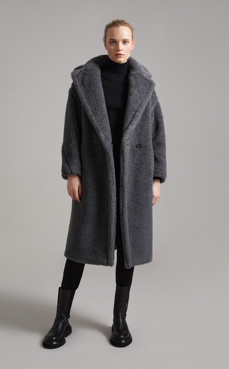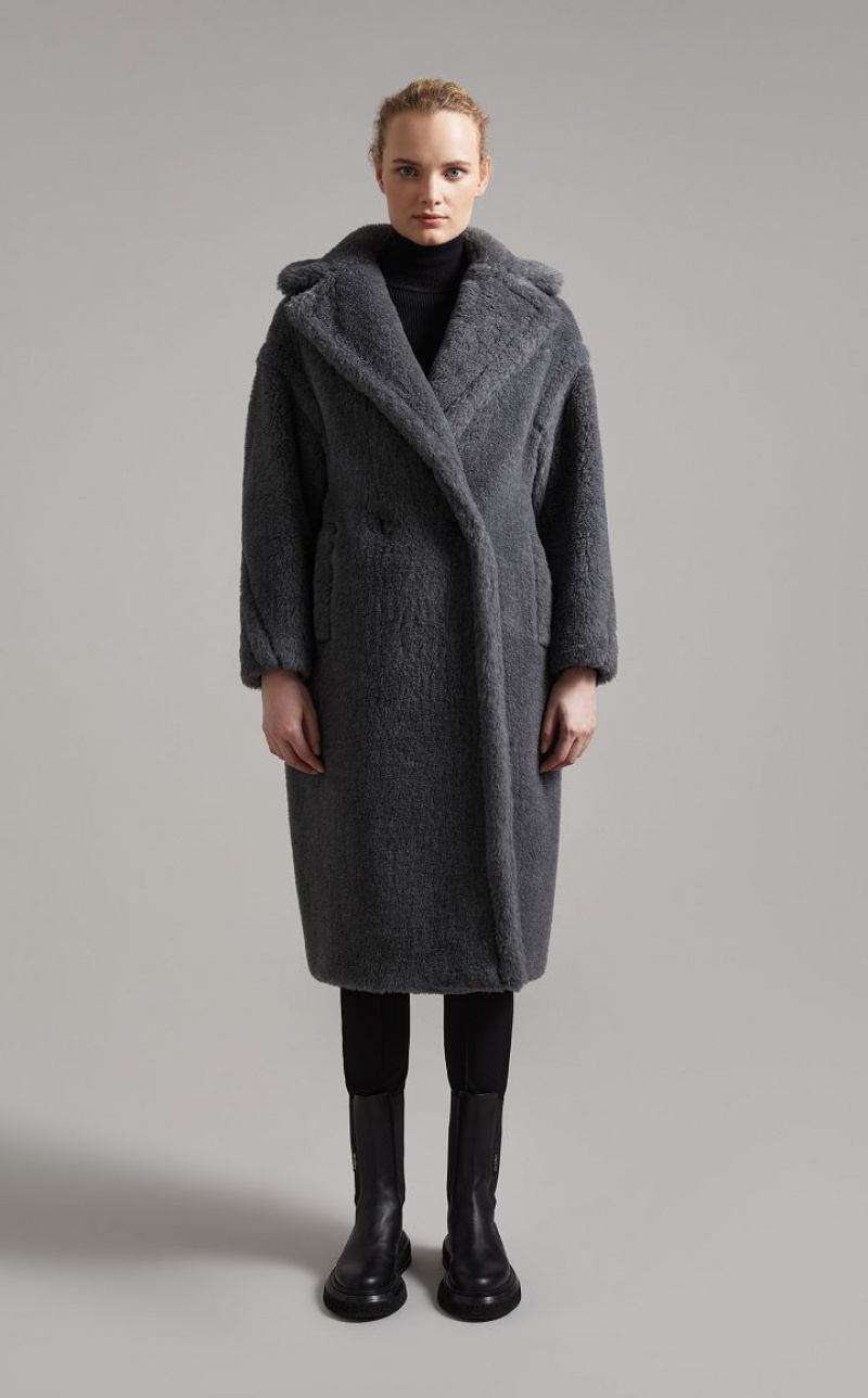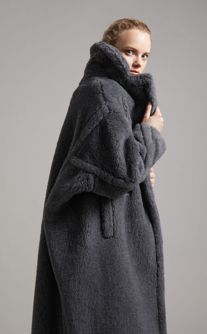 Designed in 2013, the Teddy Bear Coat was inspired by an archival garment from the ’80s and immediately became an it-coat. Stars and influencers loved its perfect alchemic blend of glamour and playfulness. Its special camel-hair texture on a silk base is created using sophisticated technology developed by the creative team with an Italian supplier, capable of producing a unique faux fur. The coat's abundant volume is a celebration of the opulent extravagance of this fabric.- Oversized fit- Lapel collar - Dropped set-in sleeves- Horizontal welt pockets - Double-breasted closure- Branded lining- Horn buttons- Length: 110 cm / 43 inches