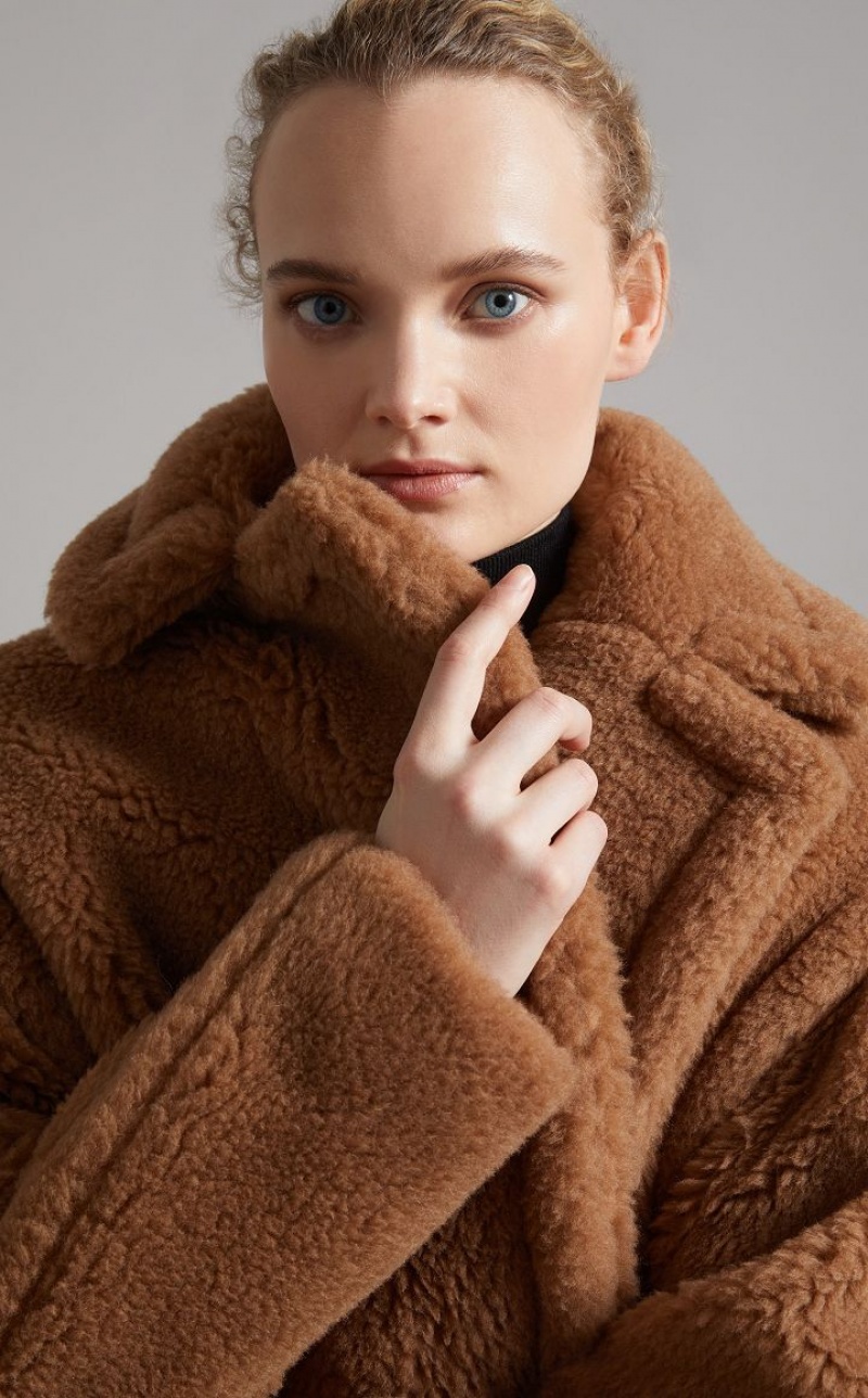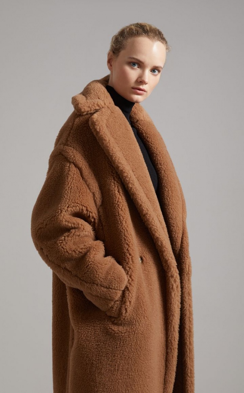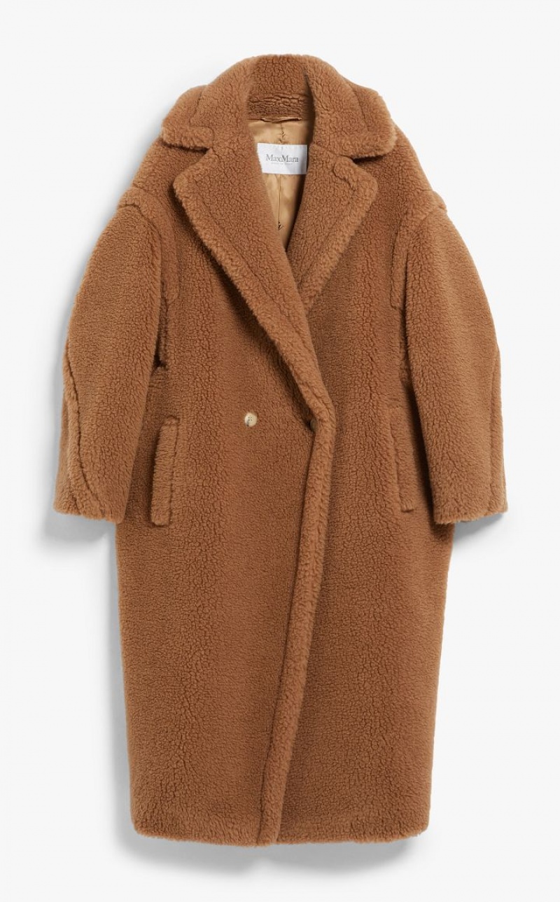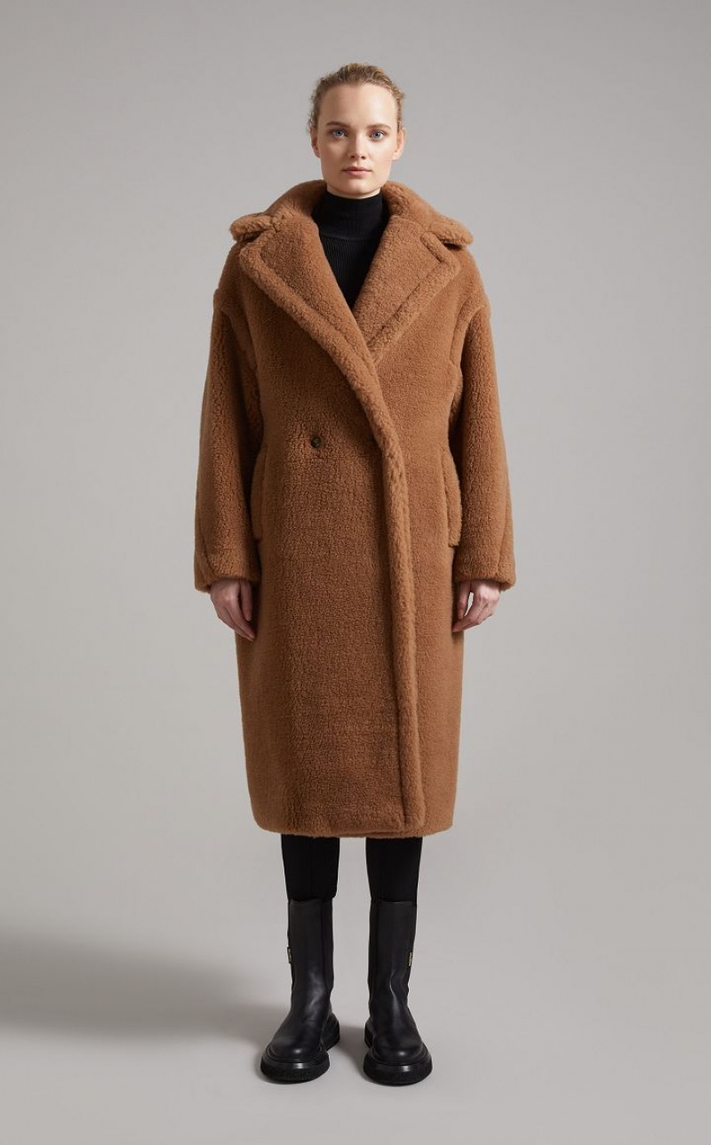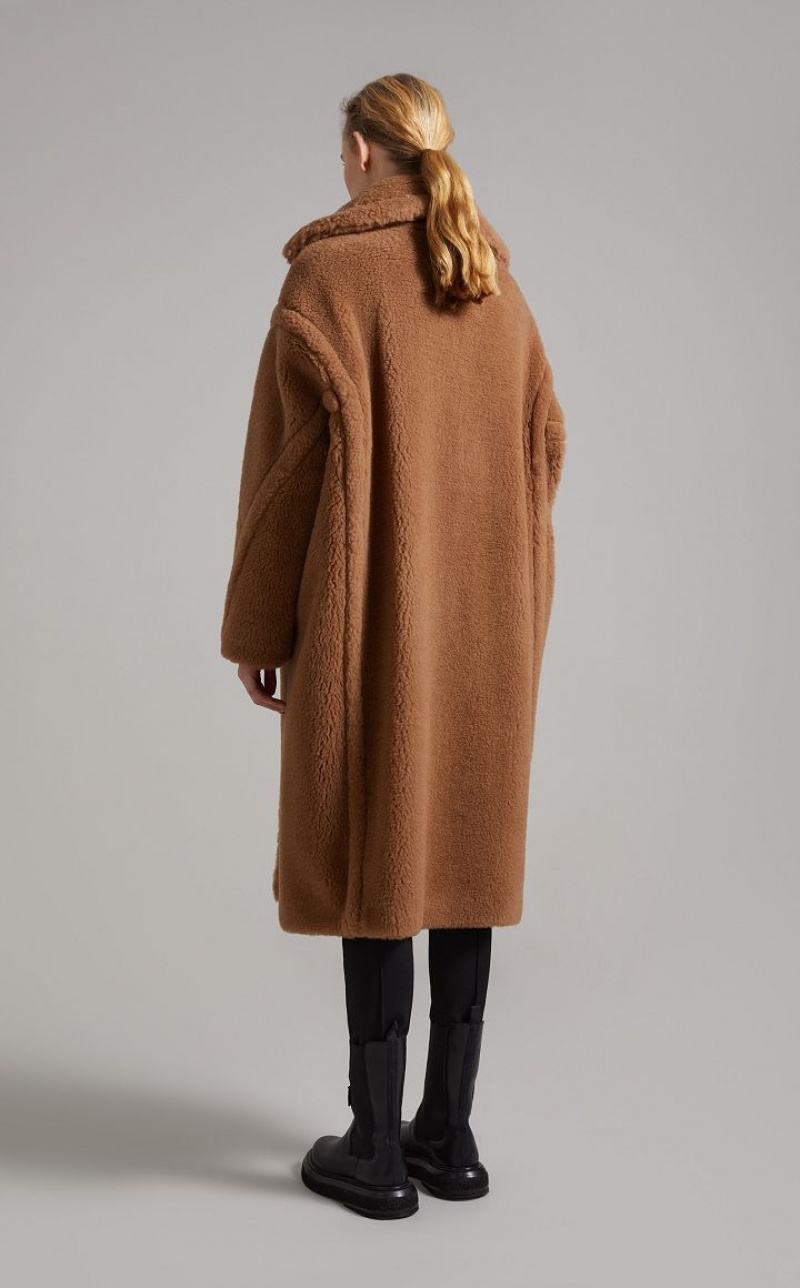 Designed in 2013, the Teddy Bear Coat was inspired by an archival garment from the 80s and immediately became an it-coat. Stars and influencers loved its perfect alchemic blend of glamour and playfulness. Its special camel-hair texture on a silk base is created using sophisticated technology developed by the creative team with an Italian supplier, capable of producing a unique faux fur. The coat's abundant volume is a celebration of the opulent extravagance of this fabric. - Made of camel hair on a silk base - Oversized fit - Lapel collar - Dropped set-in sleeves - Horizontal welt pockets - Double-breasted closure - Branded lining - Horn buttons - Length: 110 cm / 43 inches