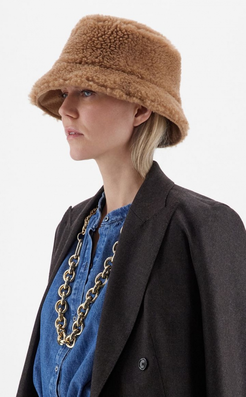 Glamorous and versatile, the Max Mara bucket hat is made of two iconic materials. One side is made of fluffy camel Teddy on a silk base, the other of soft pure camel fabric.