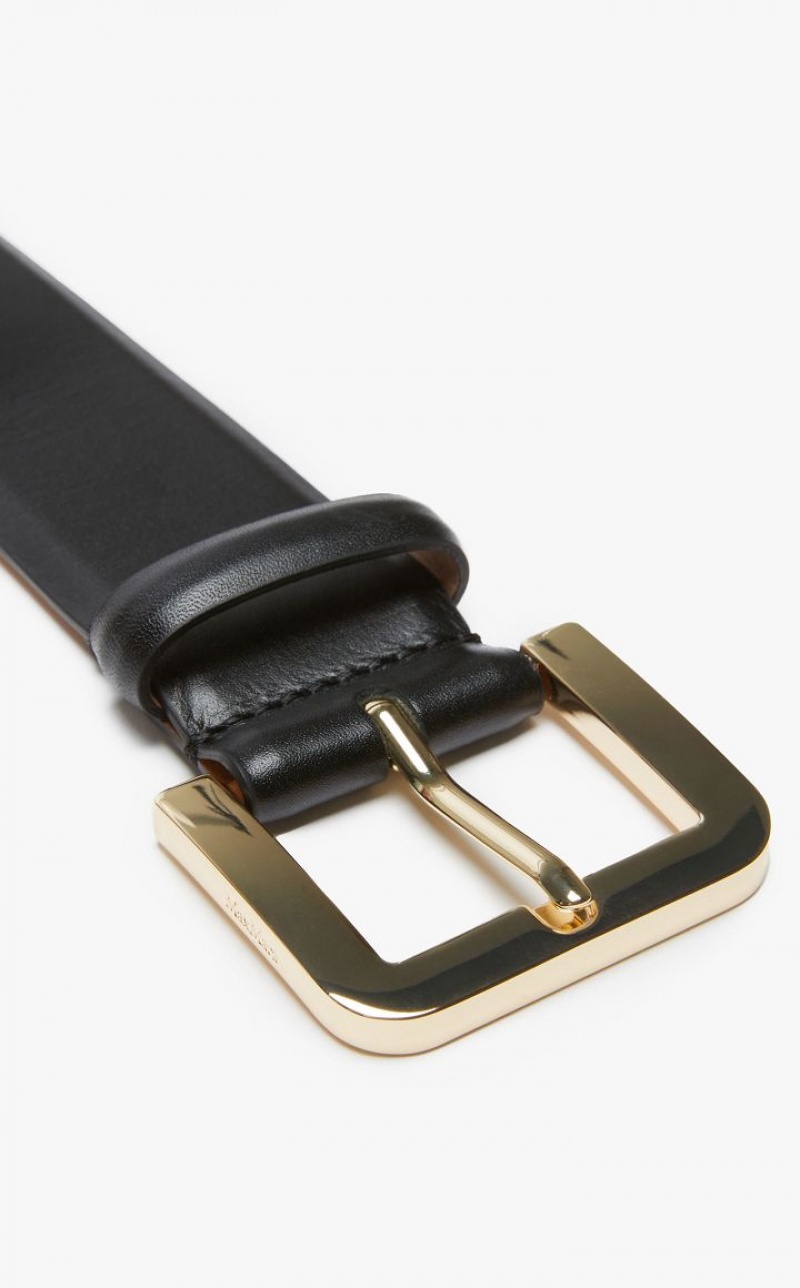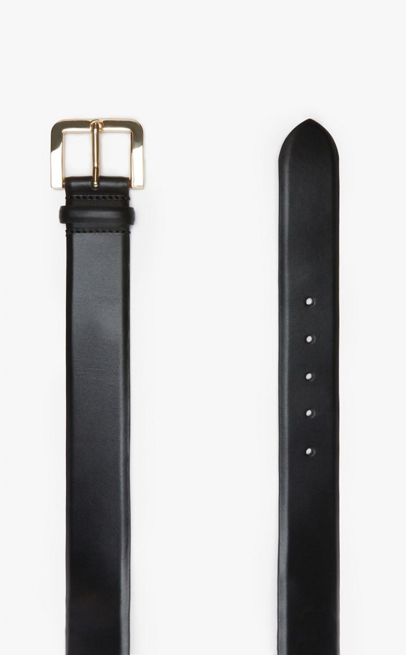 Leather belt, with rounded tip and single loop. Pin buckle with semi-glossy transparent finish. Width: 4 cm.