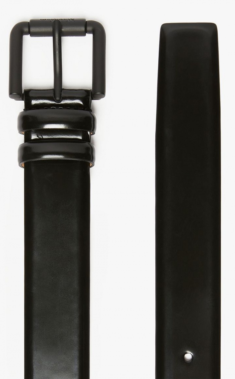 Calfskin leather belt, with a polished finish that makes it shiny and pleasantly soft. Fastens with a prong buckle. Width: 3.5 cm.