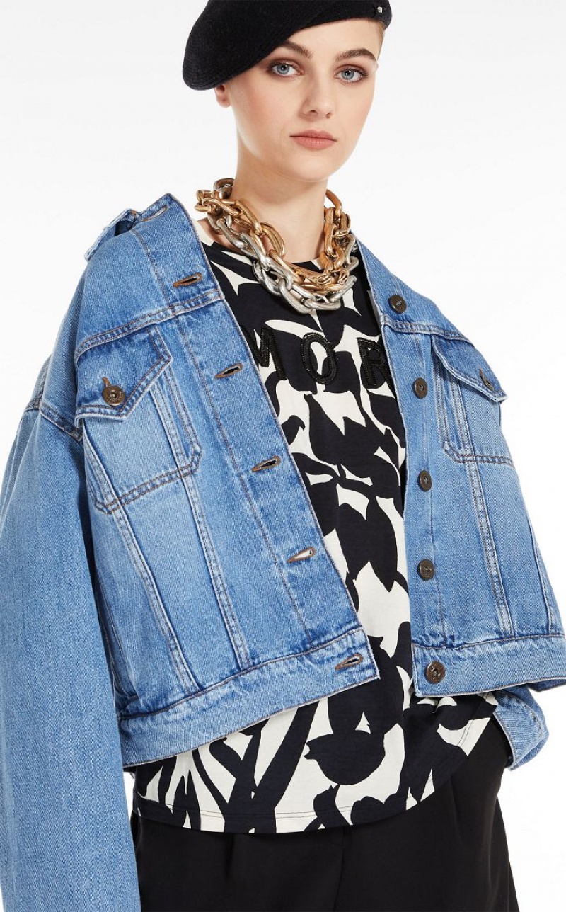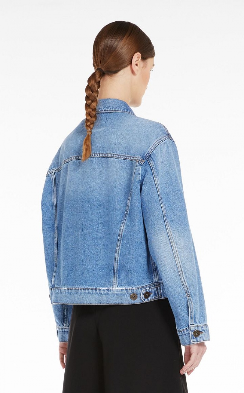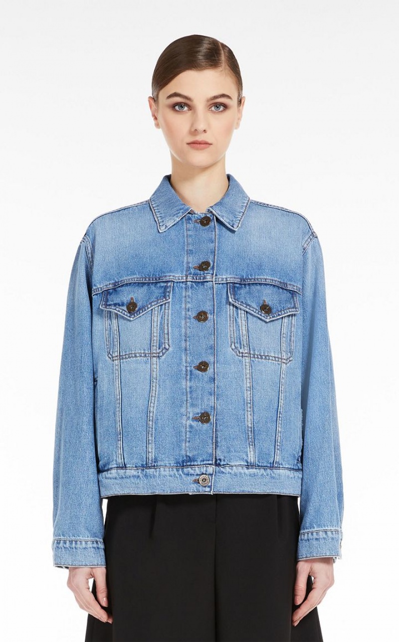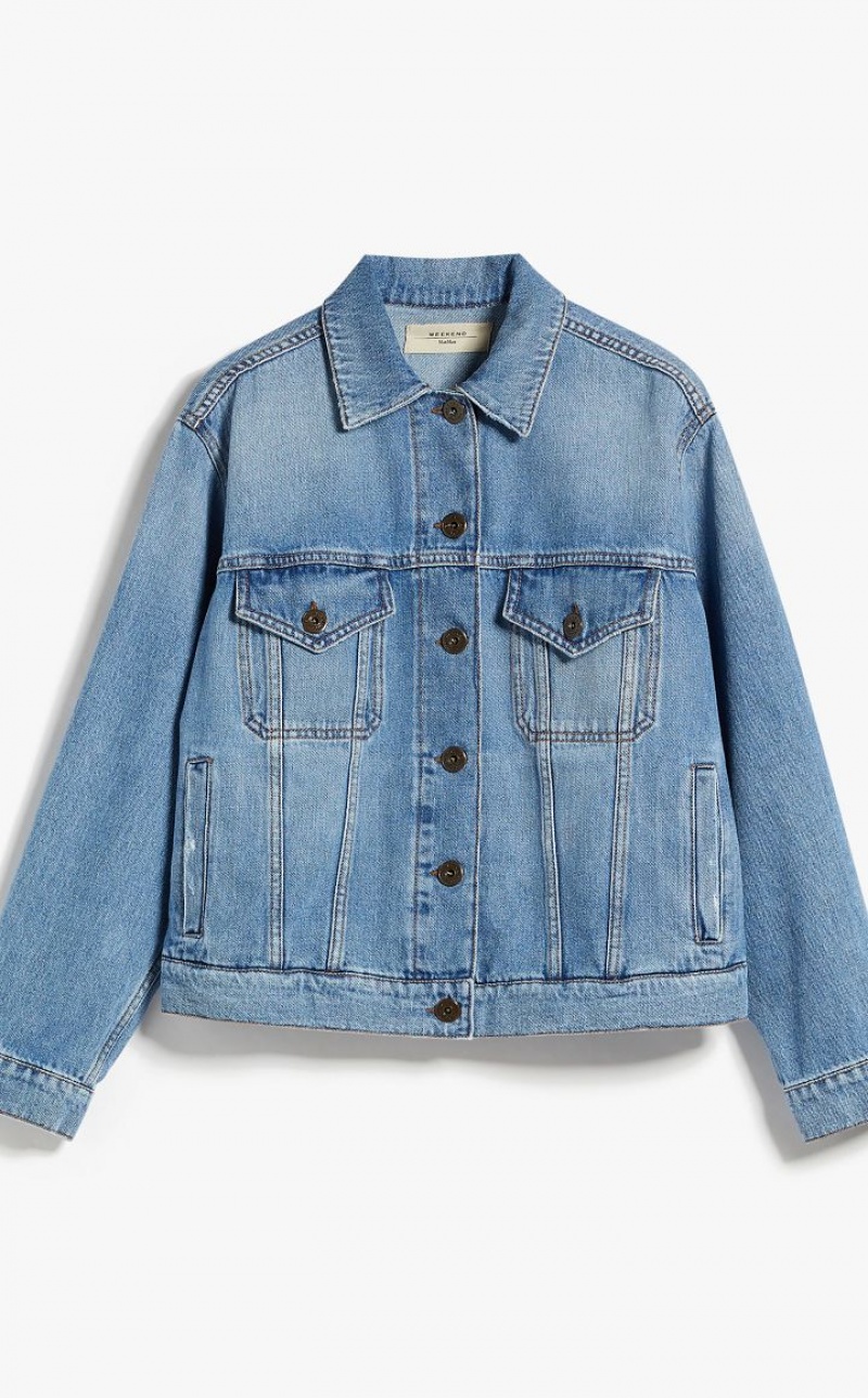Short jacket in cotton denim with a lived-in look, featuring classic details: tack buttons, double stitching, breast pockets and tabs on the back. Loose fit in a boyfriend style, customised with “Weekend” lettering inside. Front fastening with tack buttons.
