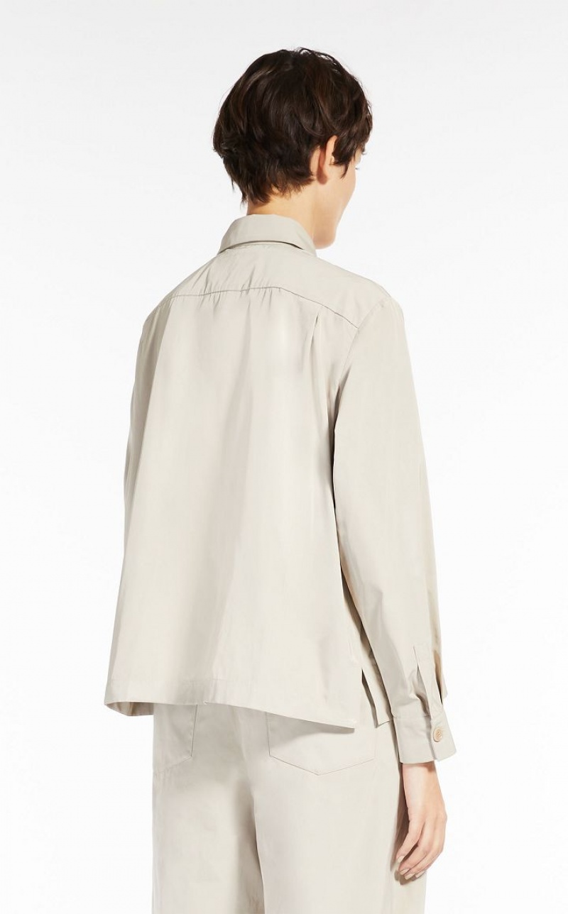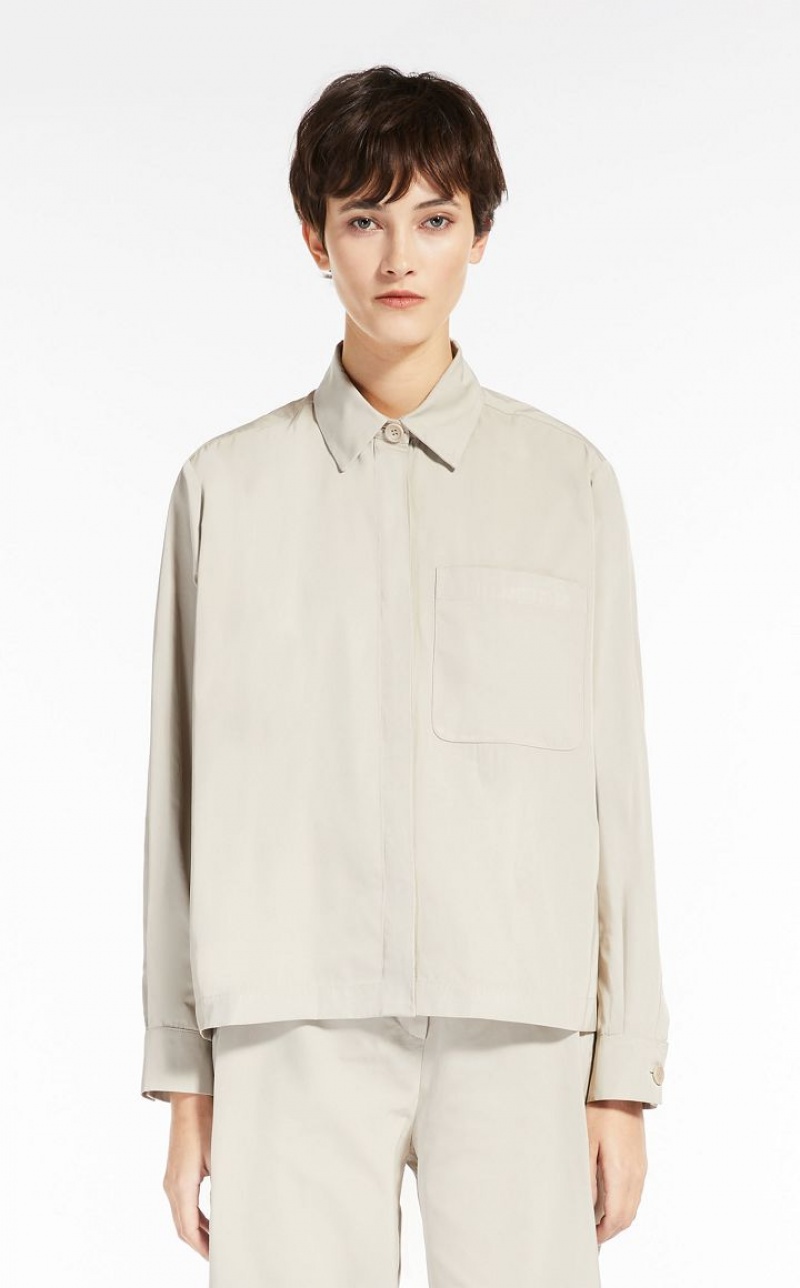 Shirt-style jacket made of lightweight radzimir with a technical look. Featuring an unlined design with a large patch pocket on the chest, side vents on the hem and long sleeves with cuffs. The boxy fit is emphasised by the slightly cropped cut and the darts on the back. Concealed button fastening. Length: 62 cm.