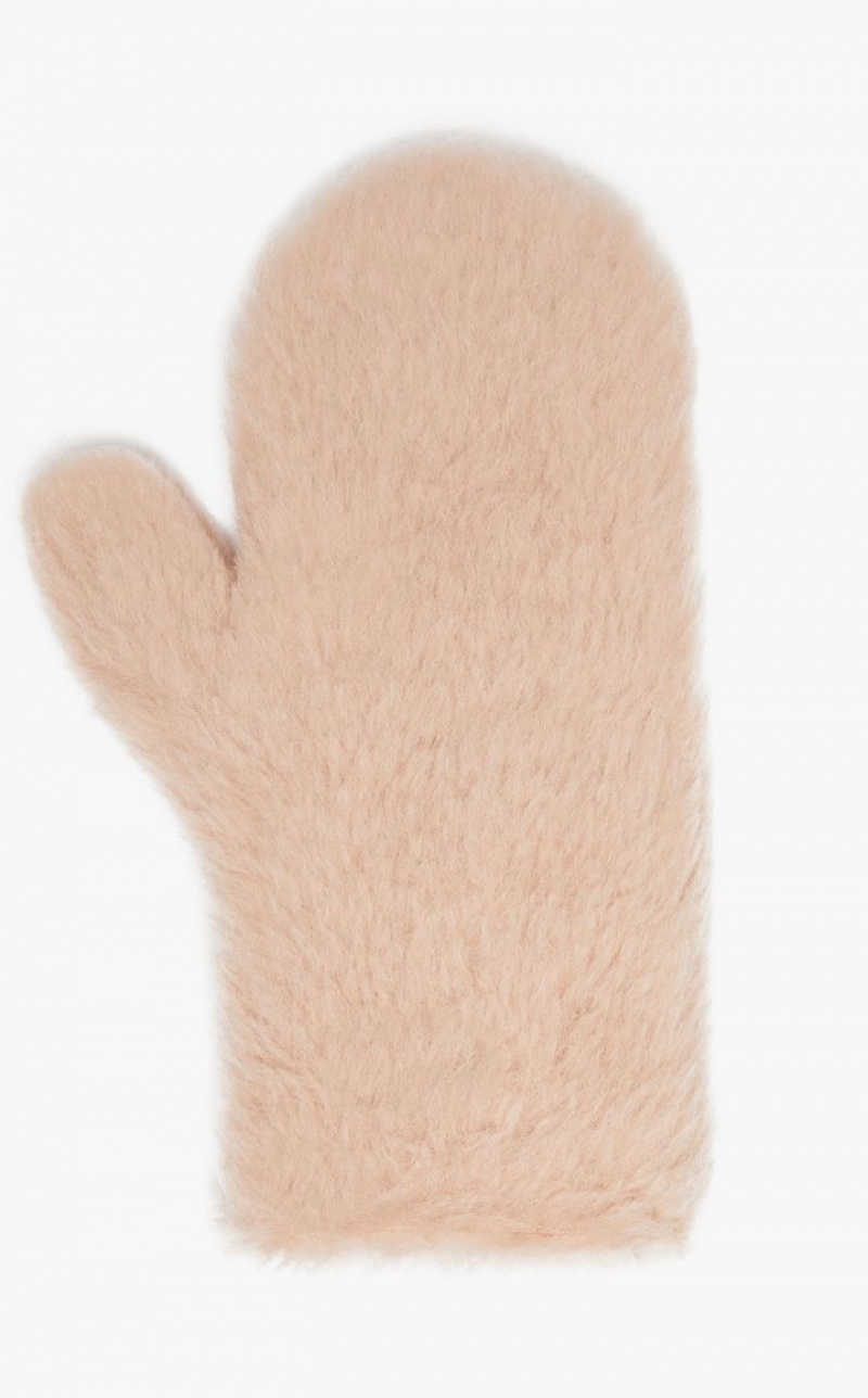 Mittens in iconic alpaca and wool Teddy fabric on a silk base, with a wool lining for excellent comfort and warmth. Complete with removable cord with small metal snap clip.