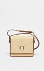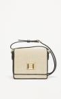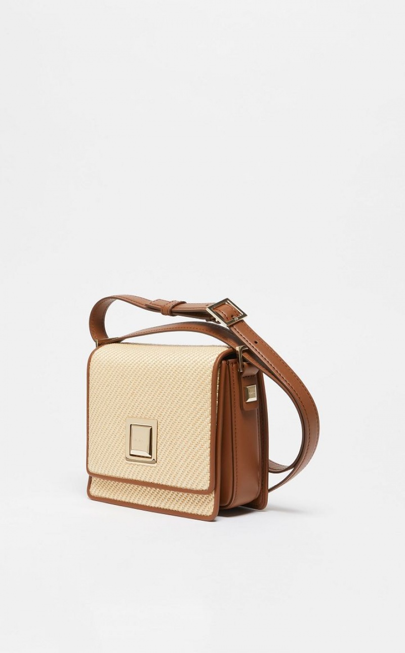 Small MM Bag in smooth leather and raffia effect fabric, with a two toned twill texture. The typical square shape, square styling and geometric metal clasp are a nod to the architecture of the Max Mara headquarters. The suede effect fabric interior is organised into two gusseted compartments with an edged pocket. Adjustable strap for wearing over the shoulder or crossbody. Snap fit button fastening. <BR/>Measurements: 18 x 7 x 17 cm.