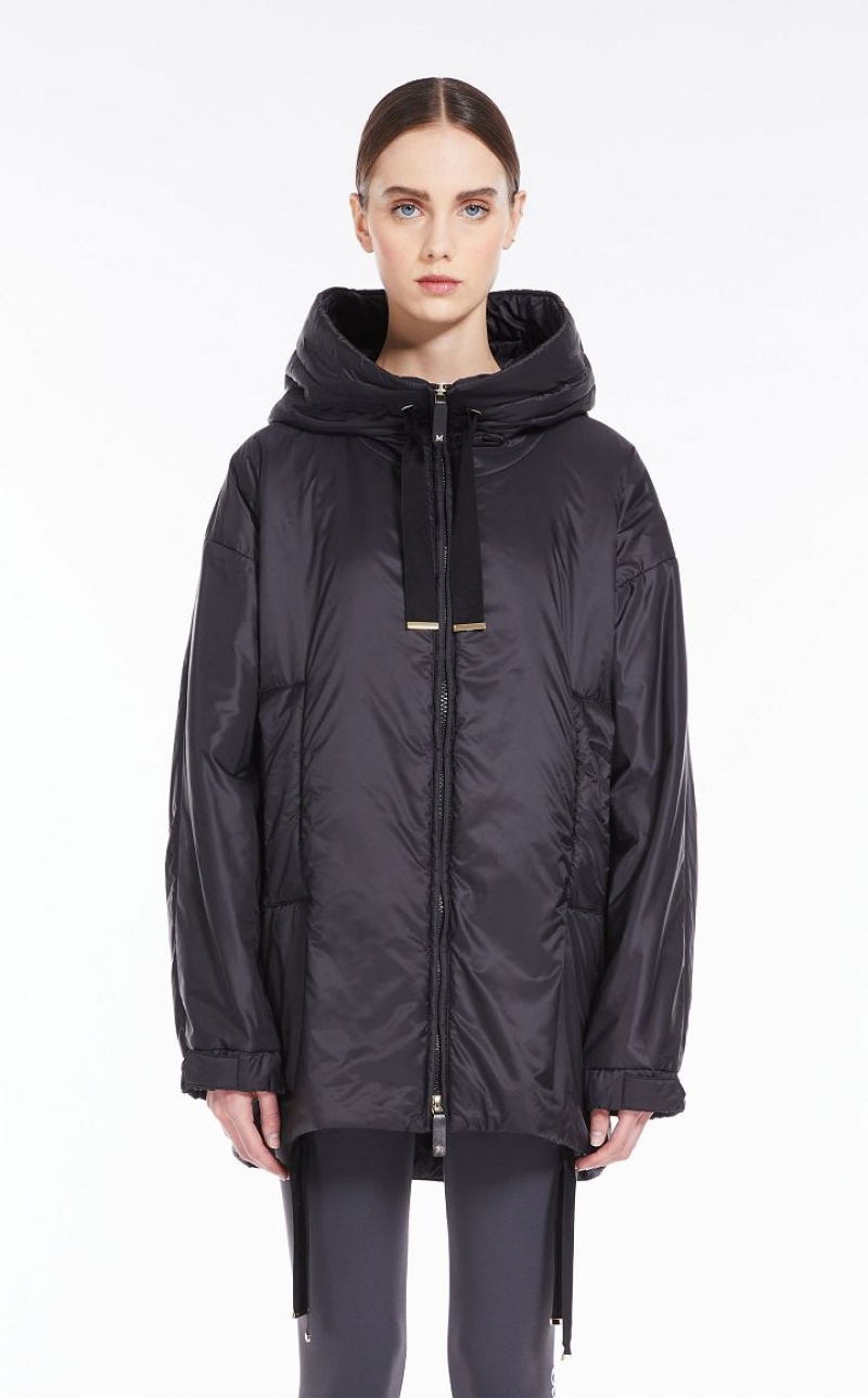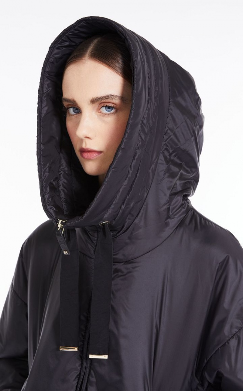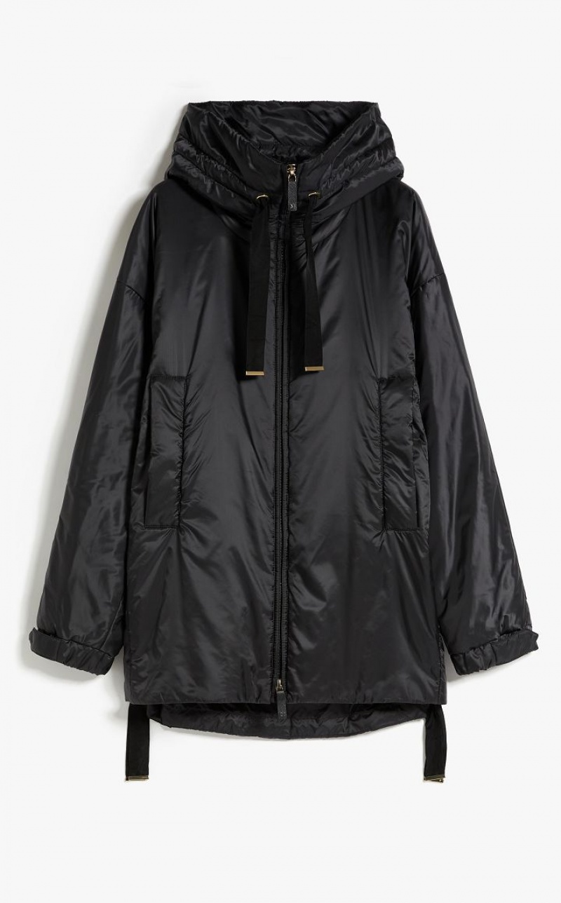 Short padded jacket in water-repellent technical canvas featuring a hood, welt front pockets and in-seam side pockets. Fit-adjusting hem drawstring. Zip fastening. The Cameluxe padding sets the garment apart: a new frontier as far as upcycling processes are concerned, since any surplus material leftover from the process of cutting the pure camel fabrics for our legendary coats, is recovered. These pieces of fabric are then reused to create a special padding material that boasts the same insulating properties as virgin materials, without needing to use any more raw materials. Length: 82 cm.