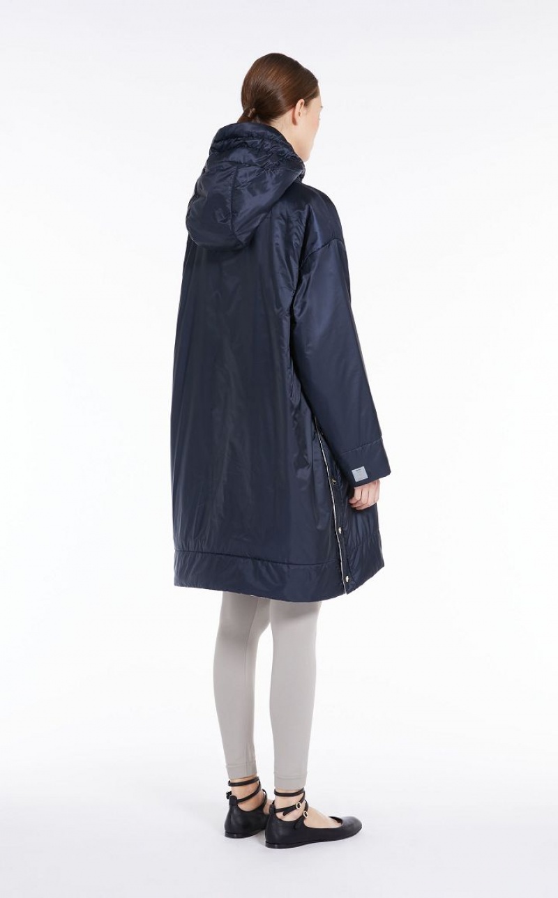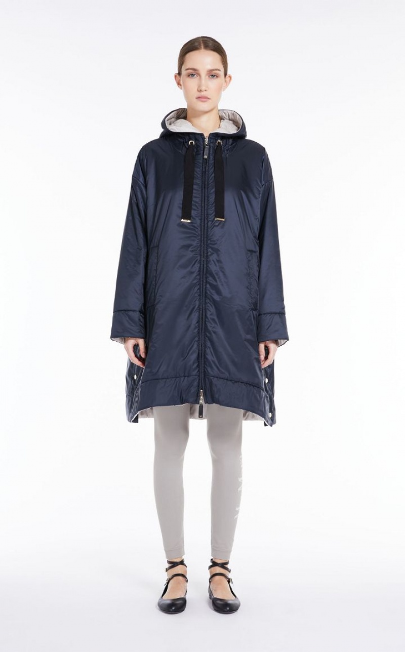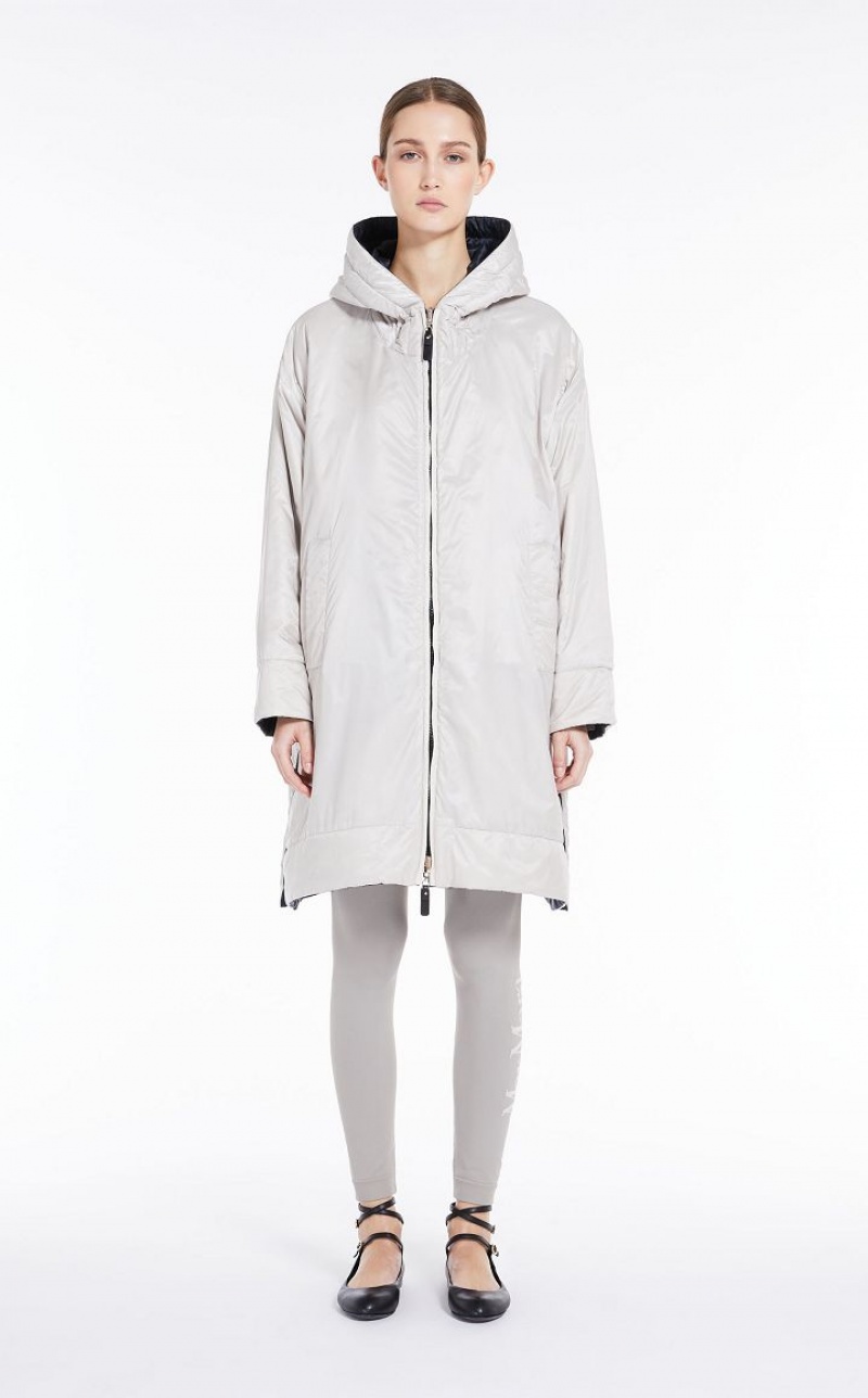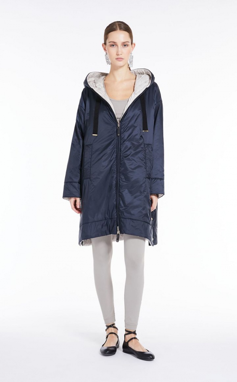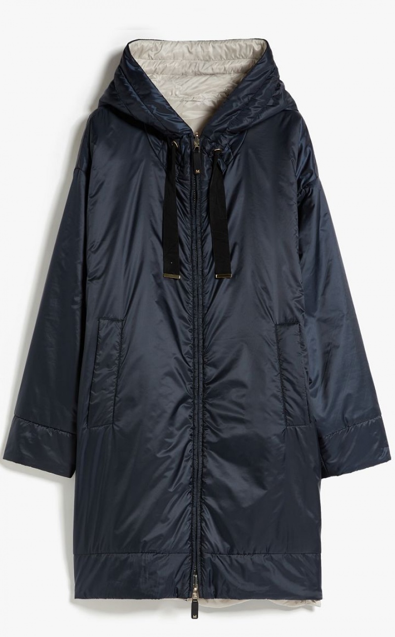 Reversible padded midi jacket in water-repellent technical canvas featuring a drawstring hood and metal press stud-fastening side slits. Welt front pockets. Zip fastening. The Cameluxe padding sets the garment apart: a new frontier as far as upcycling processes are concerned, since any surplus material leftover from the process of cutting the pure camel fabrics for our legendary coats, is recovered. These pieces of fabric are then reused to create a special padding material that boasts the same insulating properties as virgin materials, without needing to use any more raw materials. Length: 94 cm.