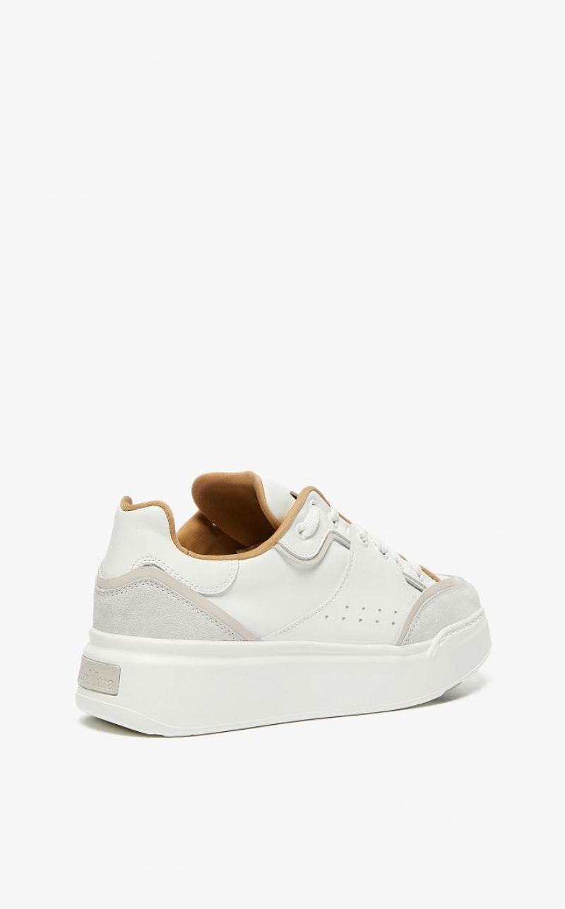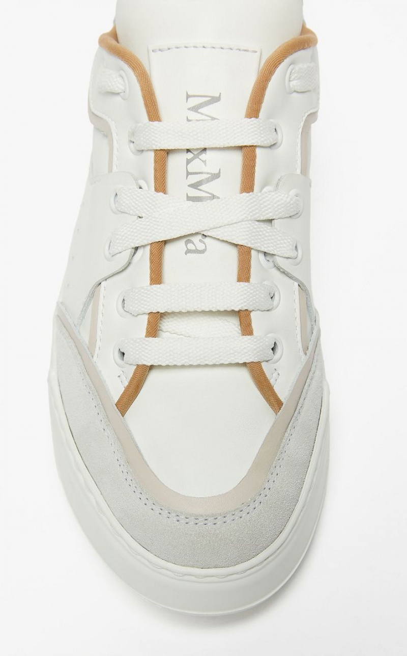 Calfskin and suede urban sneakers with minimalist lines. The design features an oversized leather label on the tongue, with a screen-printed logo and an interplay of laces that leave it visible. The extremely lightweight sole customised with an M Monogram logo and 5 cm internal memory foam footbed make them extremely comfortable and light for walking in.