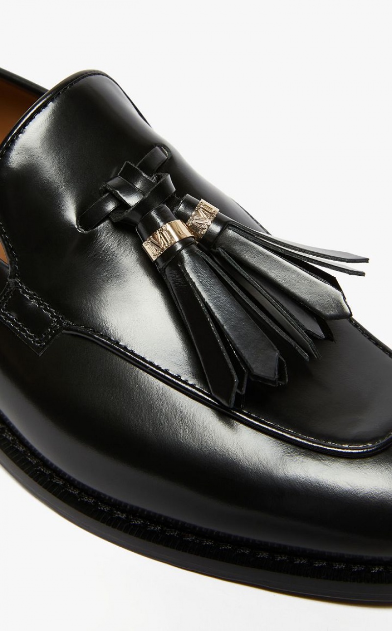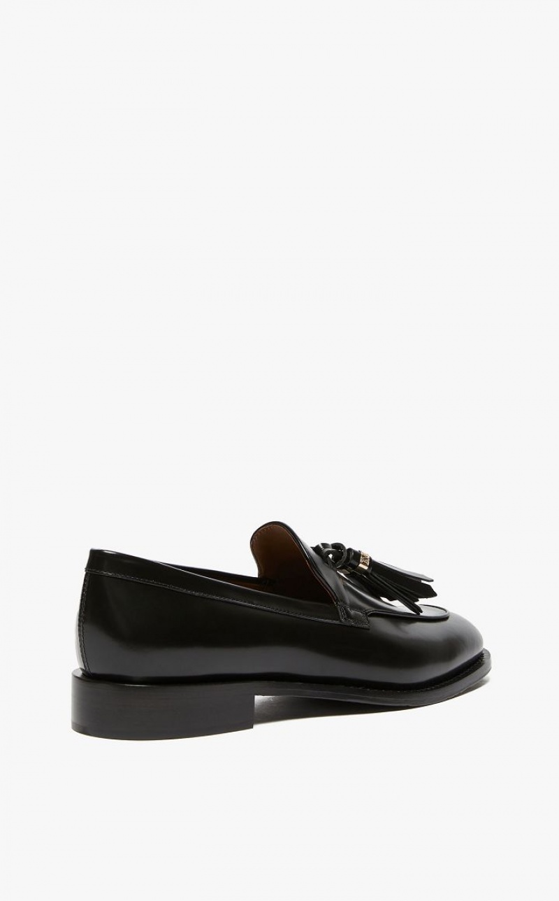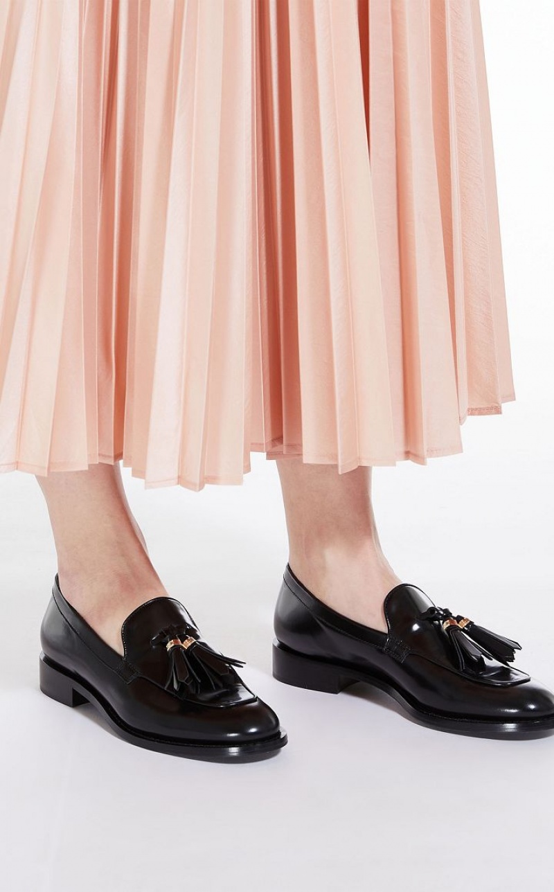 Feminine leather and brushed calfskin loafers. The design inspired by classic men's styles features two customised tassels with an M monogram detail on the upper. Leather lining and leather monobloc sole with heel and non-slip rubber sole protector.