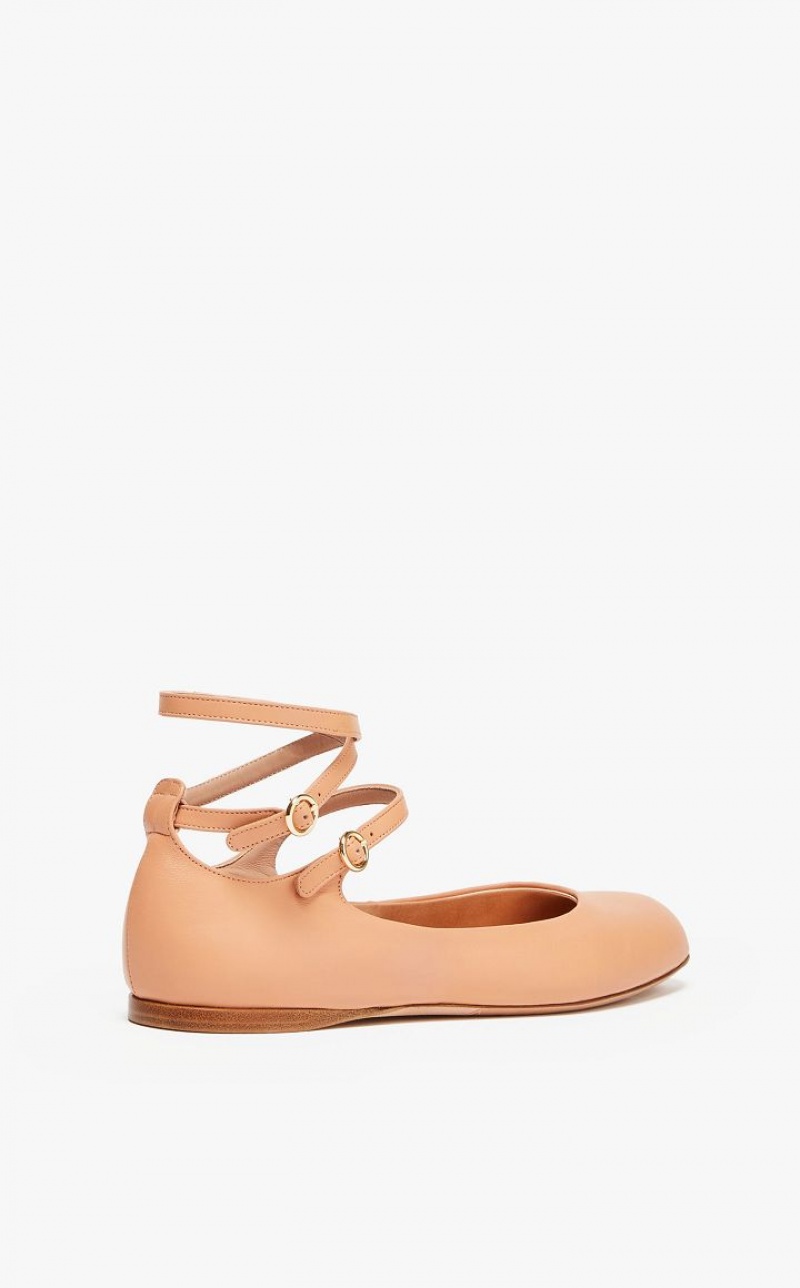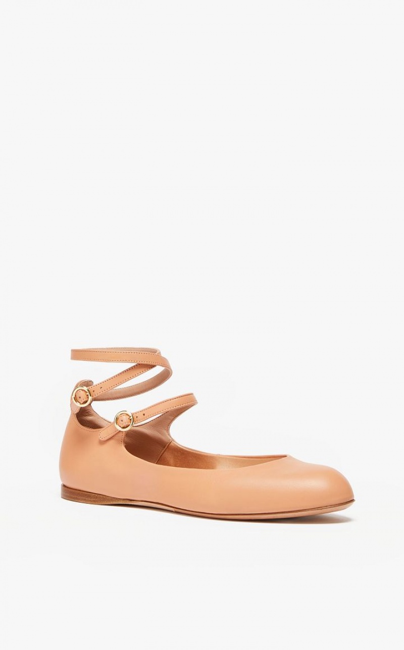 Flat ballerinas made of soft semi-glossy nappa leather with a round toe and collar. The style features a strap on the instep and an adjustable double-wrap strap at the ankle. Extremely flexible and comfortable, featuring a lightly padded pure silk-satin lining and a pumice-leather sole with a heel and non-slip rubber insert.