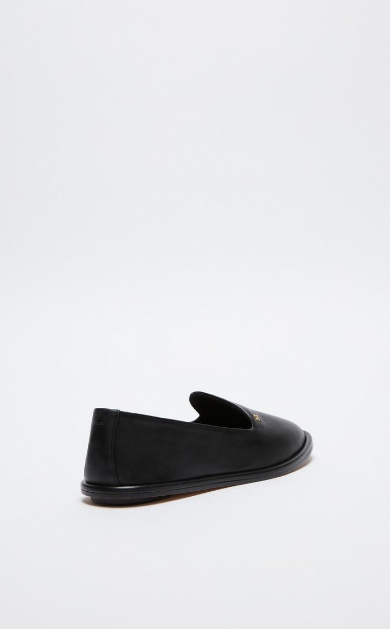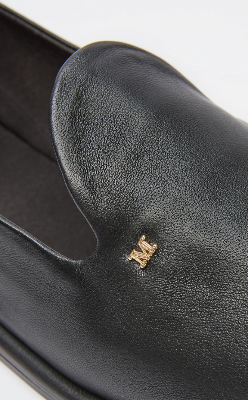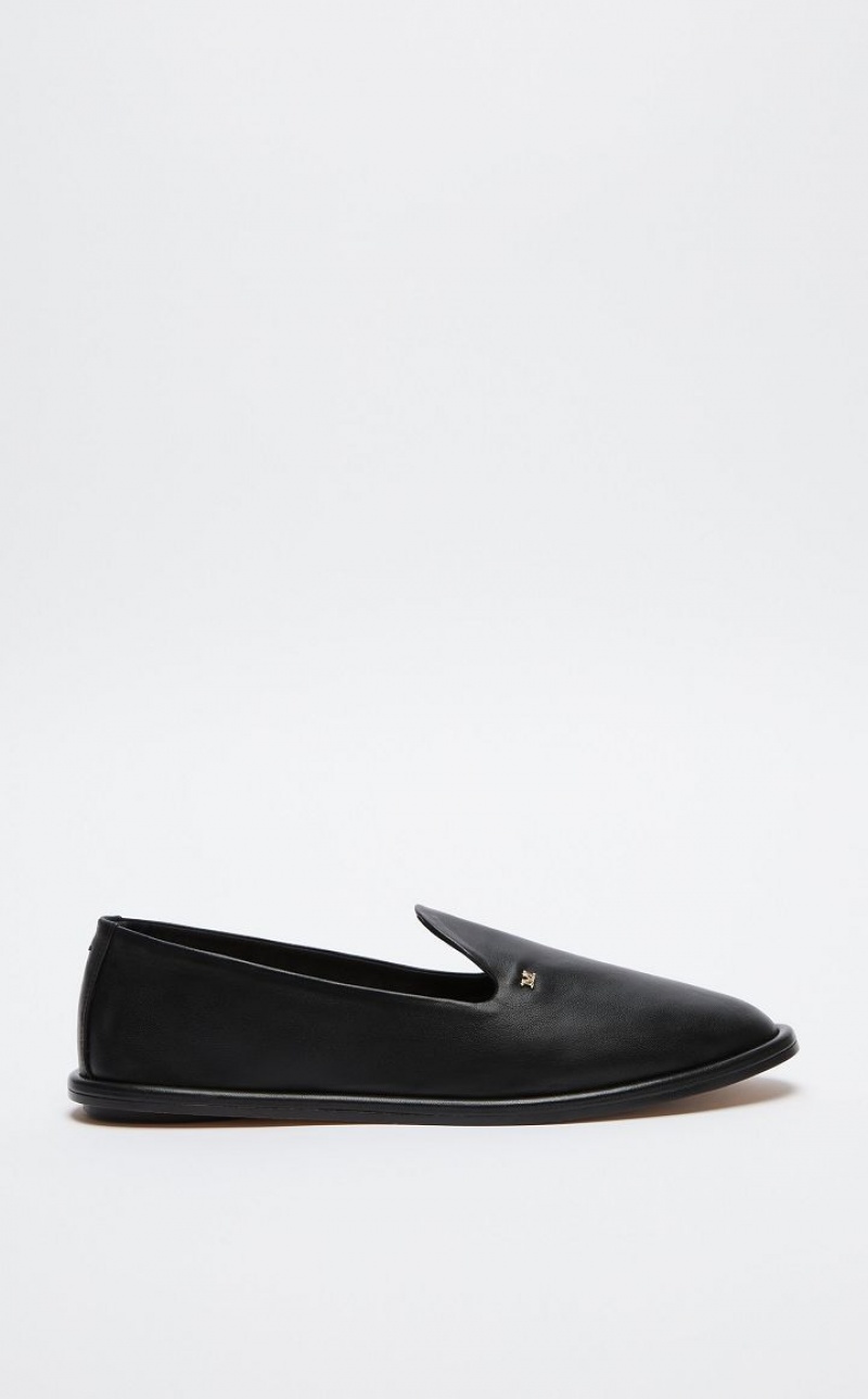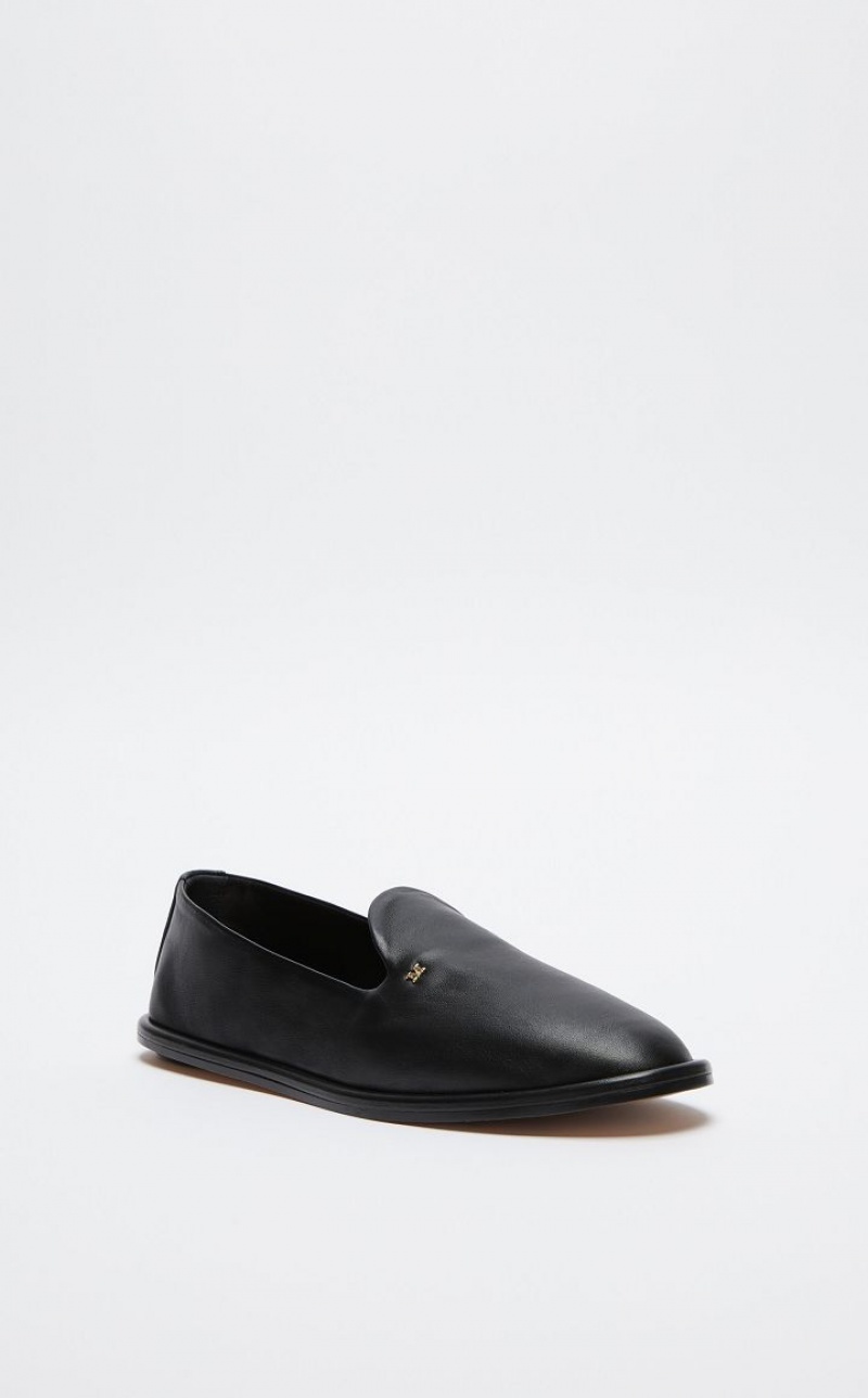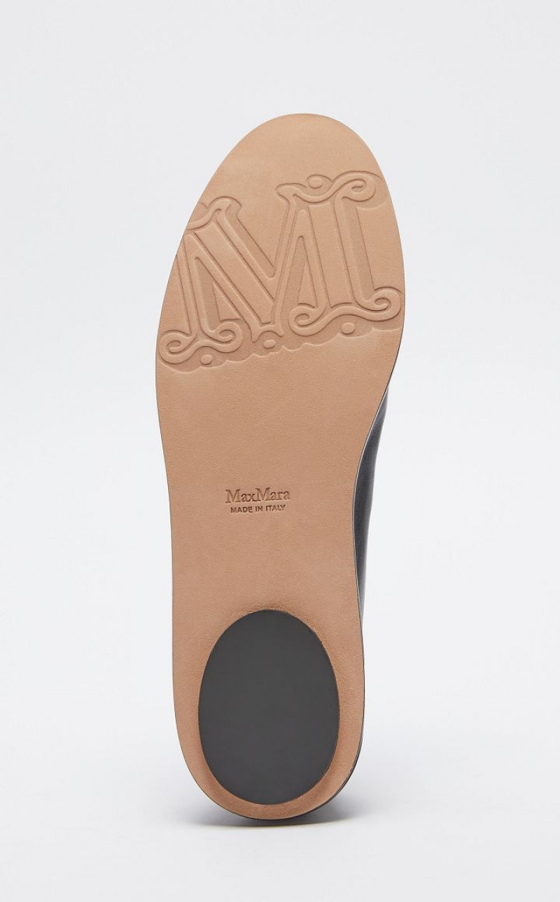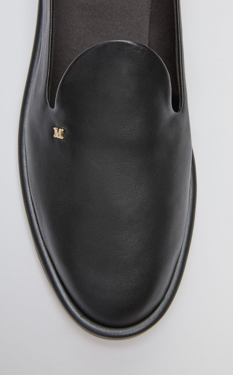 Soft, semi-glossy nappa-leather slippers with pure silk-satin lining, customised with a metal micro M on the tongue. The pouch construction with a padded insole accentuates comfort while the flexy pumice leather sole, customised with the M Monogram logo, contributes to the flexibility of the shoe. The foot rests on the soft cashmere insole with a soft height increase..