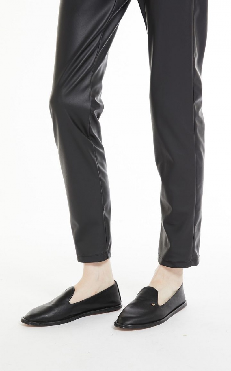 Upper in lamb leather; lining in 72% viscose, 28% silk; sole in leather.