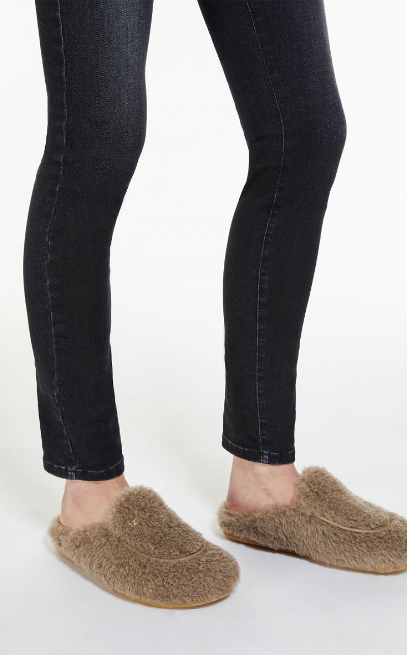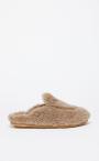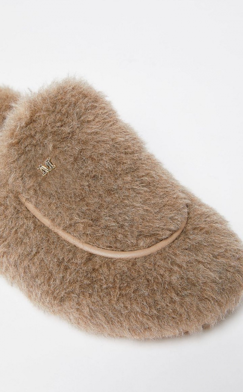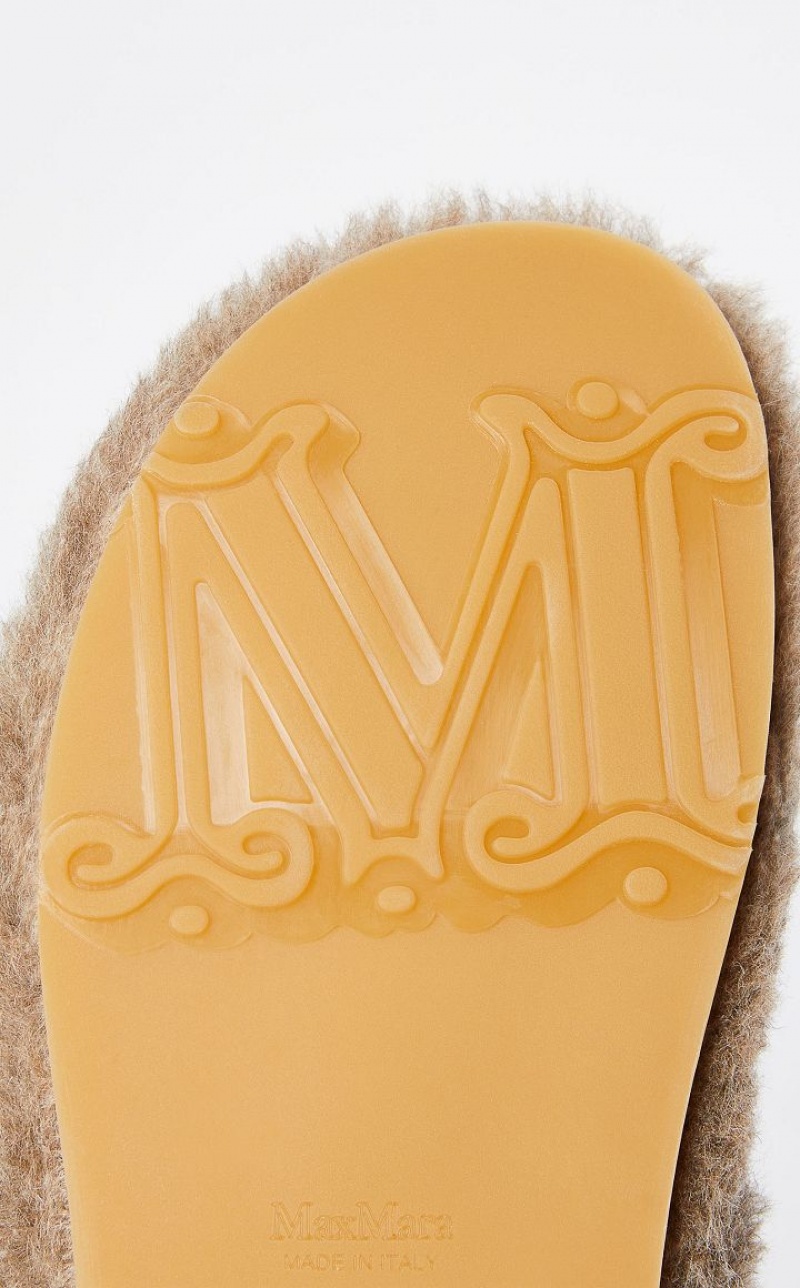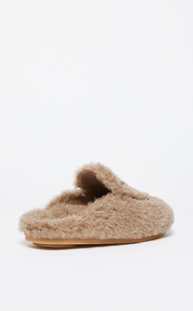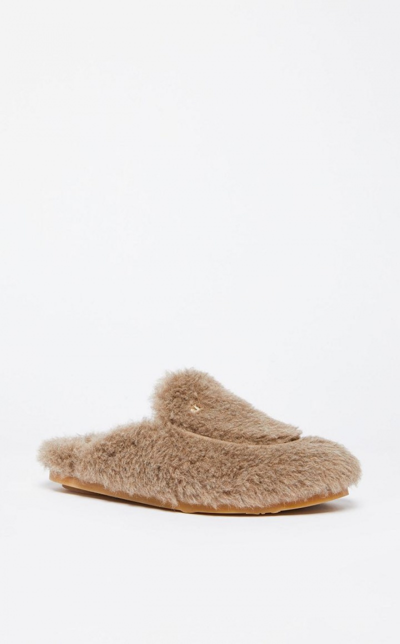 Mules in a comfortable shape made entirely of alpaca and cashmere Teddy fabric on a silk base. The upper is embellished with a smooth leather tubular element and serif M Monogram micro logo in gold-coloured metal. Finished with cashmere footbed and under-tongue. Rubber sole with non-slip M texture.