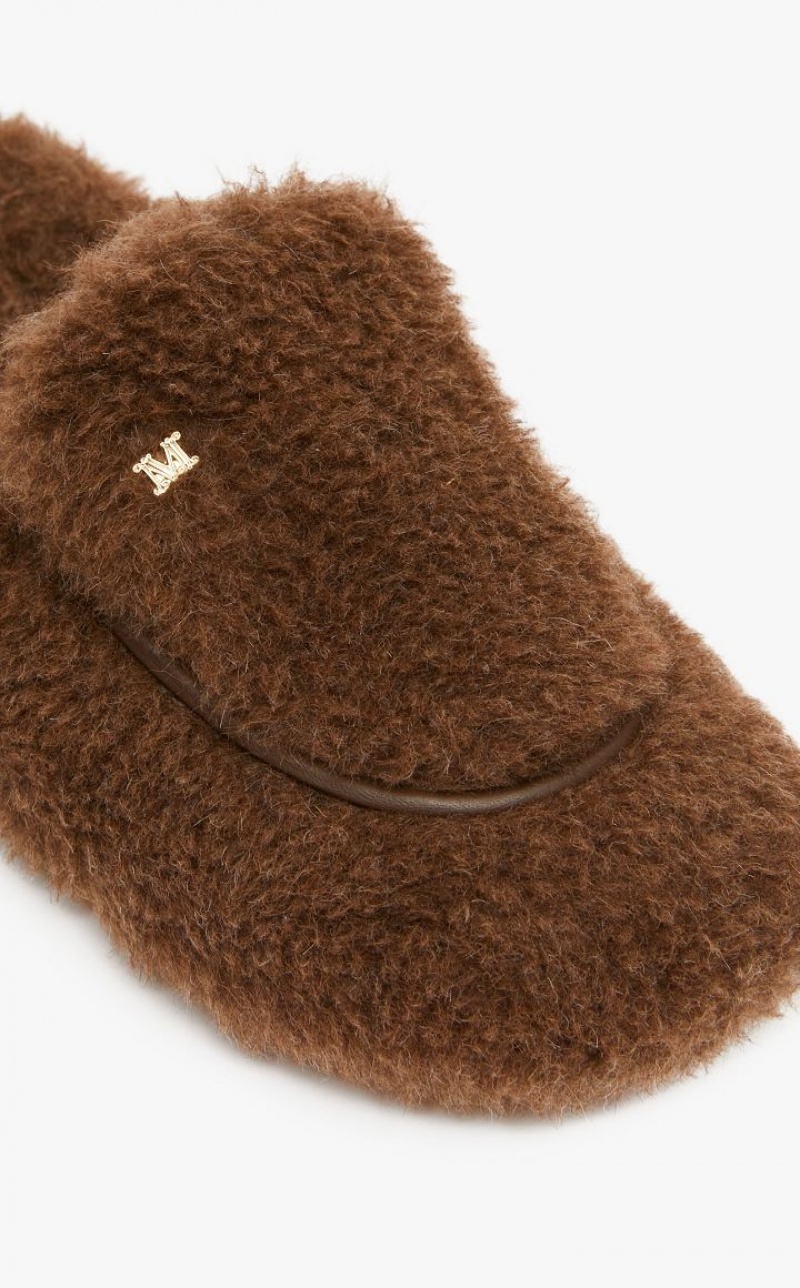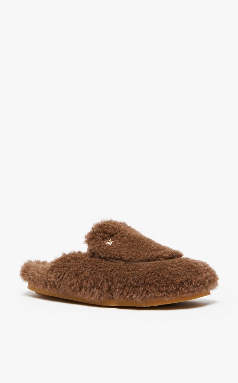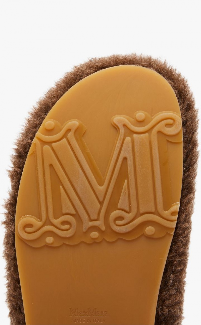 Mules in a comfortable shape made entirely of alpaca and cashmere Teddy fabric on a silk base. The upper is embellished with a smooth leather tubular element and serif M Monogram micro logo in gold-coloured metal. Finished with cashmere footbed and under-tongue. Rubber sole with non-slip M texture.