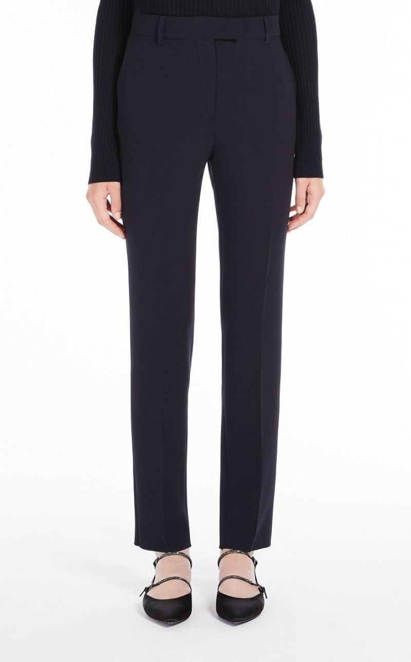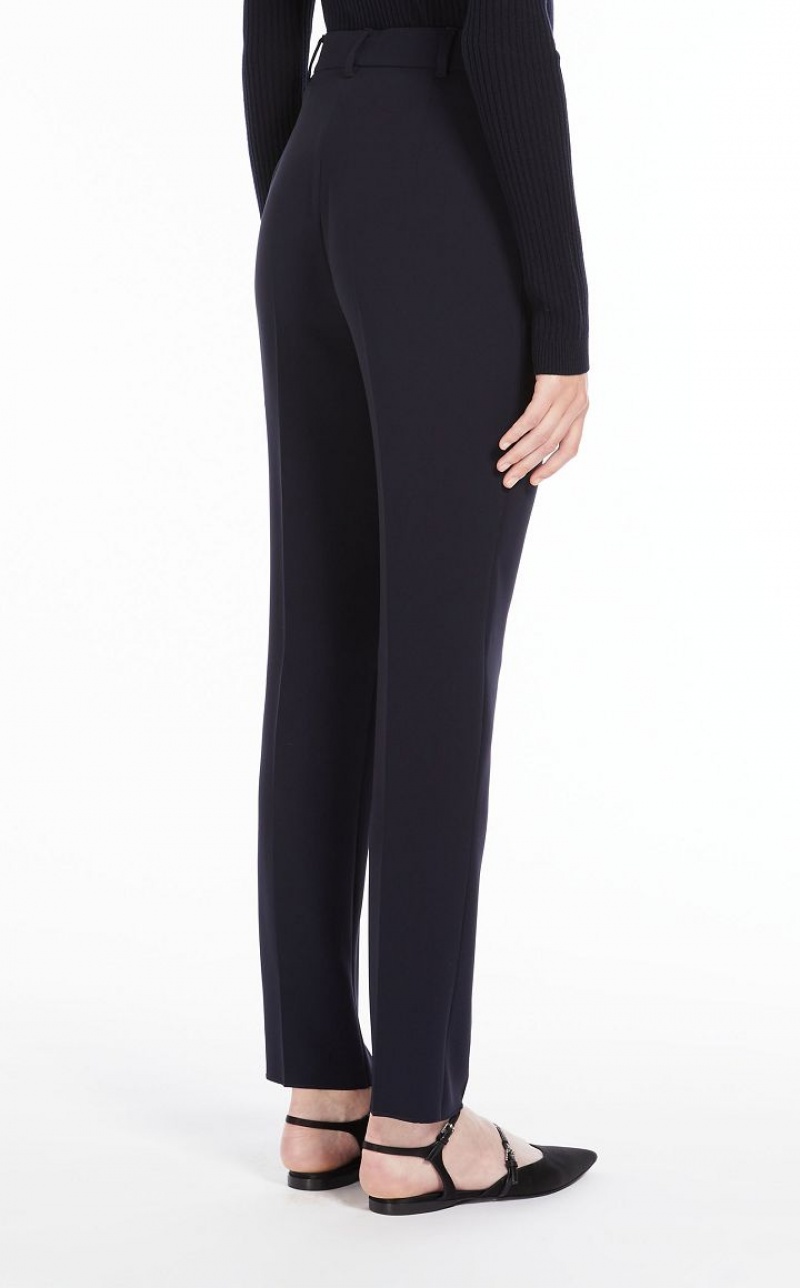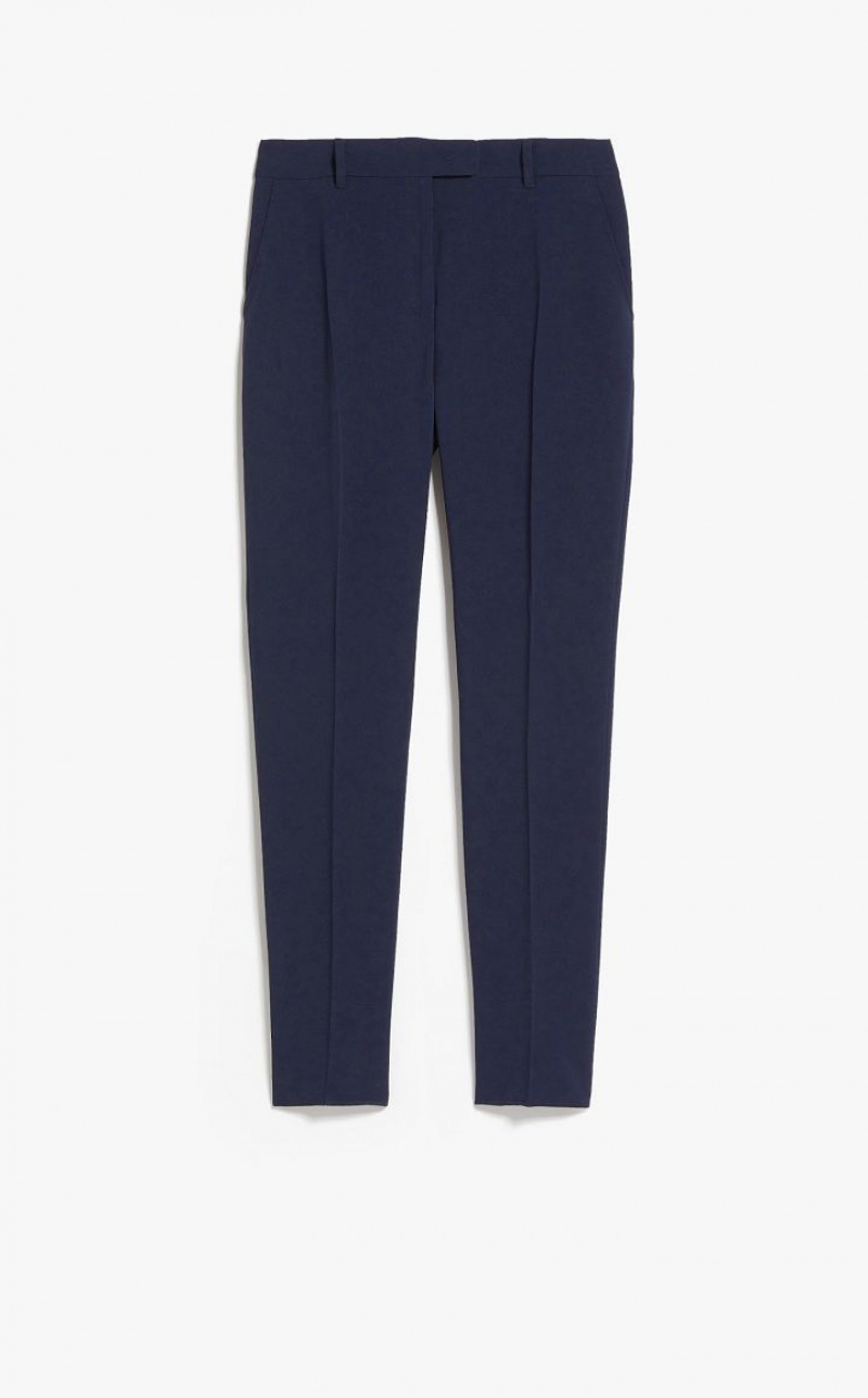 Straight-fit long trousers in technical cady fabric featuring bias-cut front pockets. The model boasts a pleasant slim fit, in addition to pressed pleat detail on the leg. Extended waist tab, complete with a placket-covered zip and hook-and-bar fastening. Length: 102 cm.