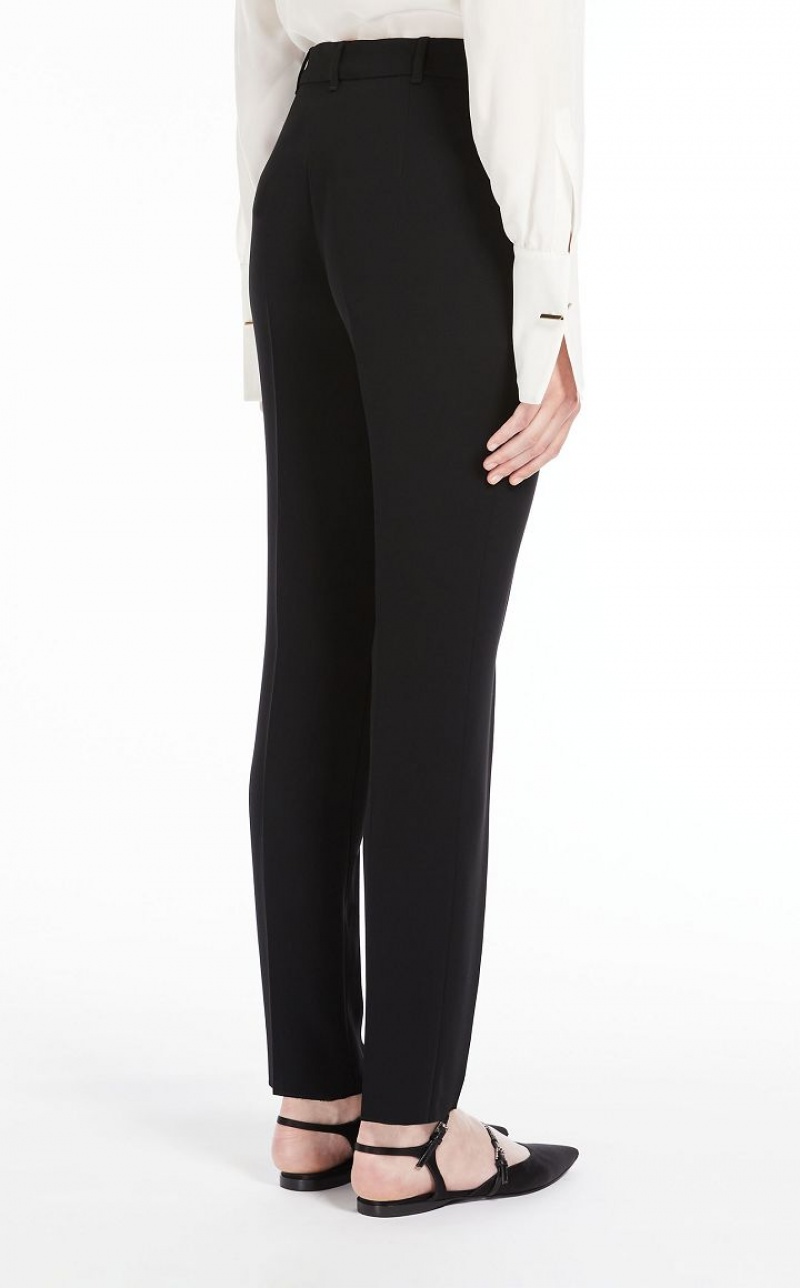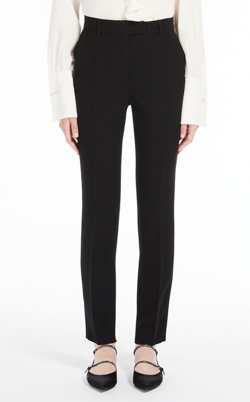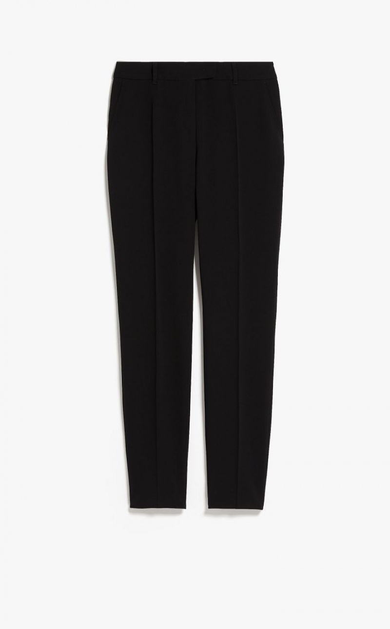 Straight-fit long trousers in technical cady fabric featuring bias-cut front pockets. The model boasts a pleasant slim fit, in addition to pressed pleat detail on the leg. Extended waist tab, complete with a placket-covered zip and hook-and-bar fastening. Length: 102 cm.