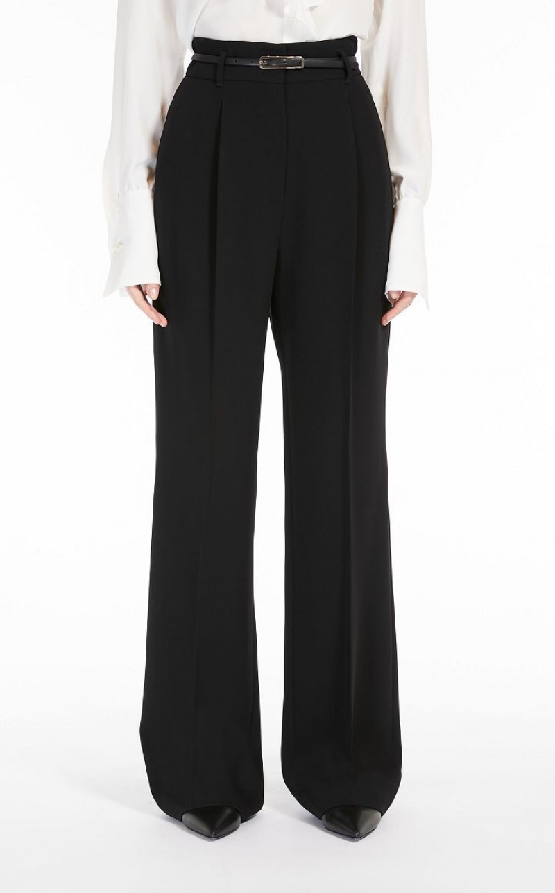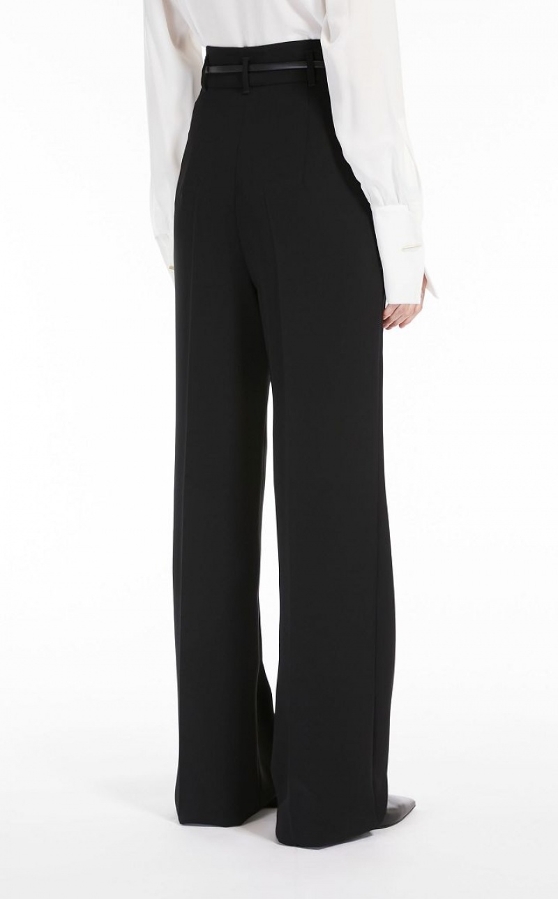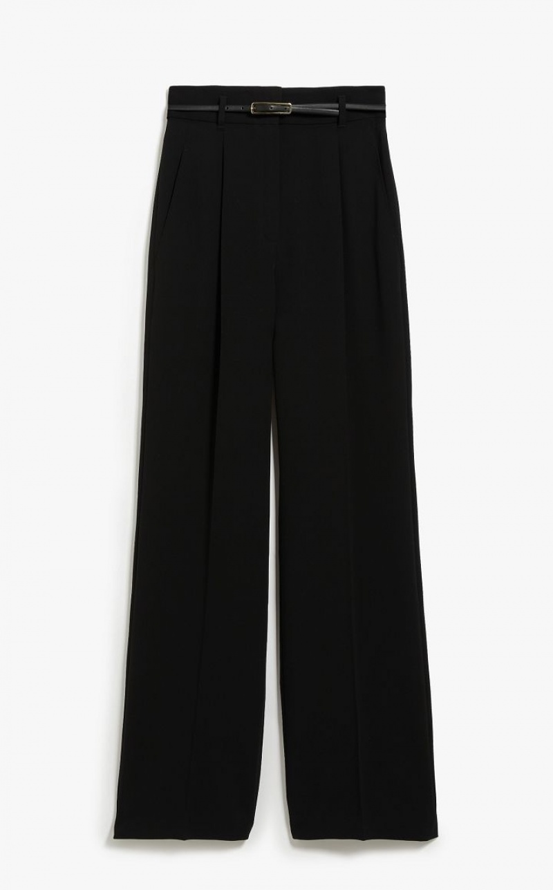 Long trousers in technical cady fabric featuring a high-waisted fluid fit, in addition to a matching belt. The model boasts bias-cut front pockets and pressed pleat detail on the leg. Fly-covered zip fastening. Length: 118 cm.