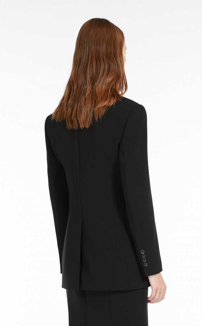 Slim-fit single-breasted long blazer in technical cady fabric featuring a lapel collar and welt pockets. Lined model. Single-breasted one-button fastening. Length: 74 cm.