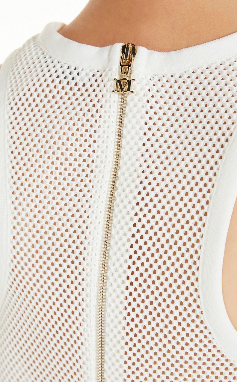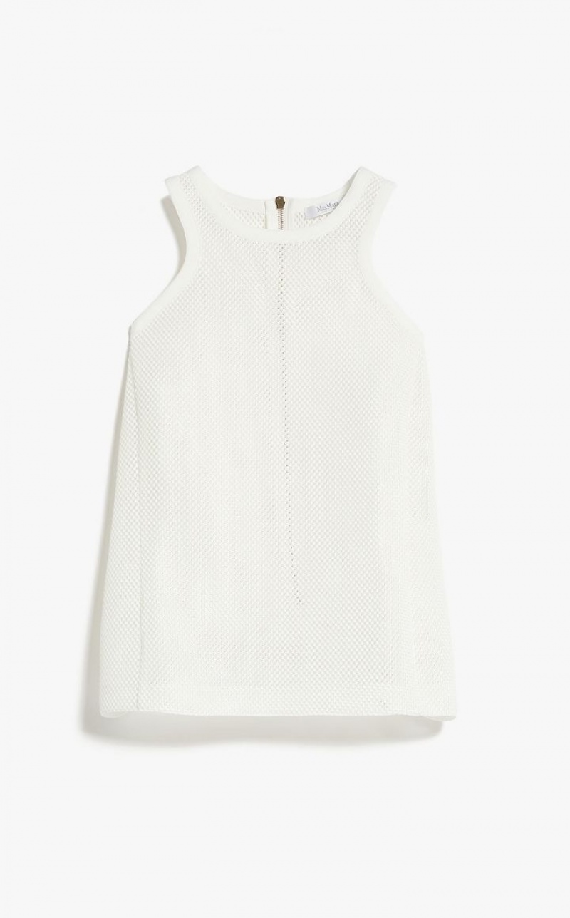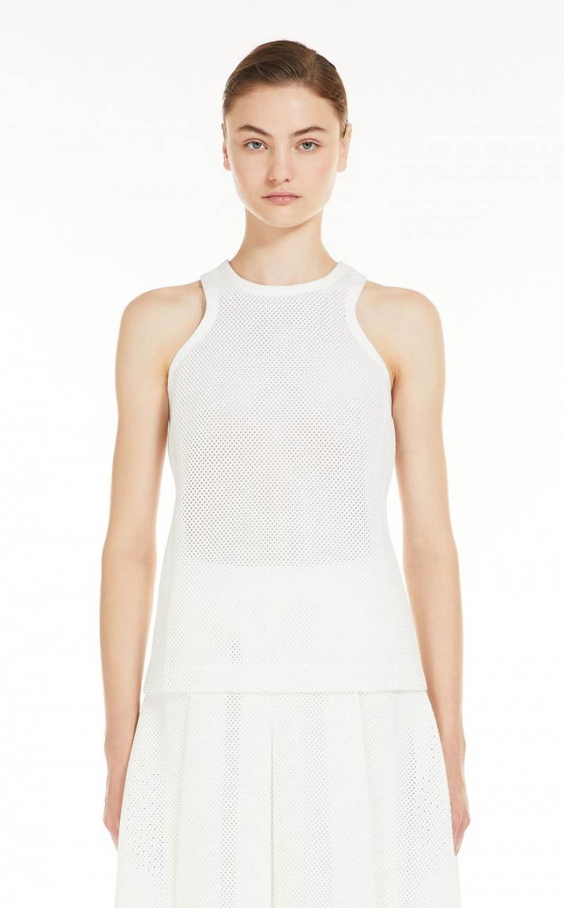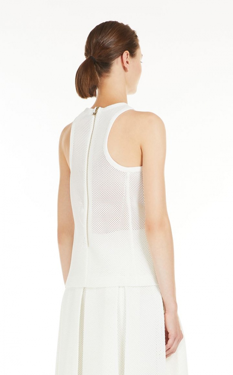 Sleeveless top with a sporty attitude made of soft, mesh-effect technical jersey. Featuring a halter neckline, it has a fitted silhouette that is extremely comfortable to wear. Half-zip fastening on the back. Length: 55 cm.
