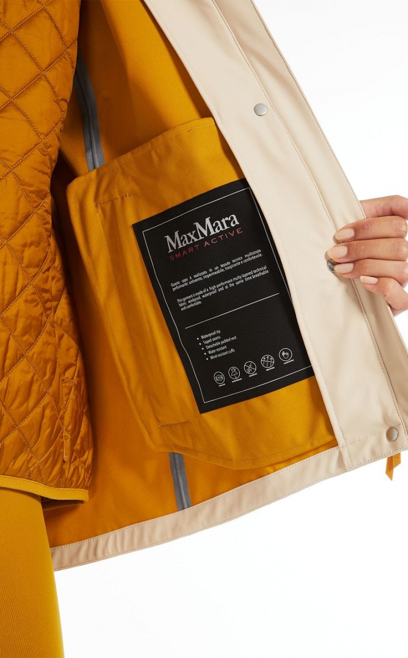Raincoat outer fabric 88% polyamide, 12% elastane; inner fabric 100% polyester. Quilted jacket fabric 100% polyamide; with quilting in 51% cashmere, 45% polyester, 4% wool; lining 100% polyamide.