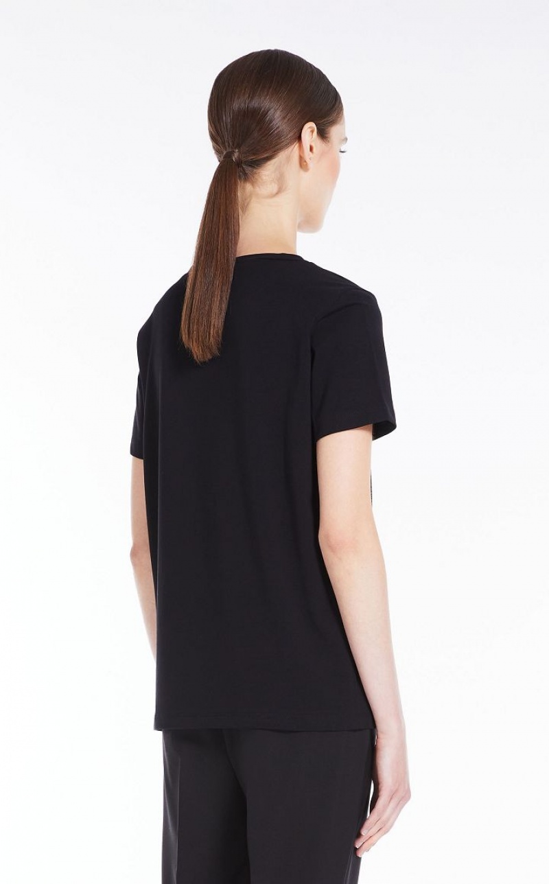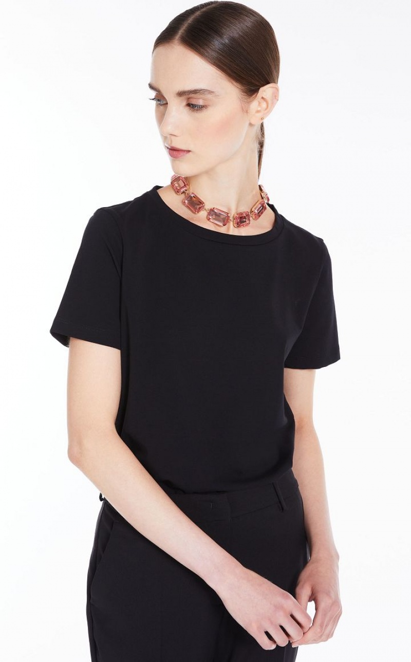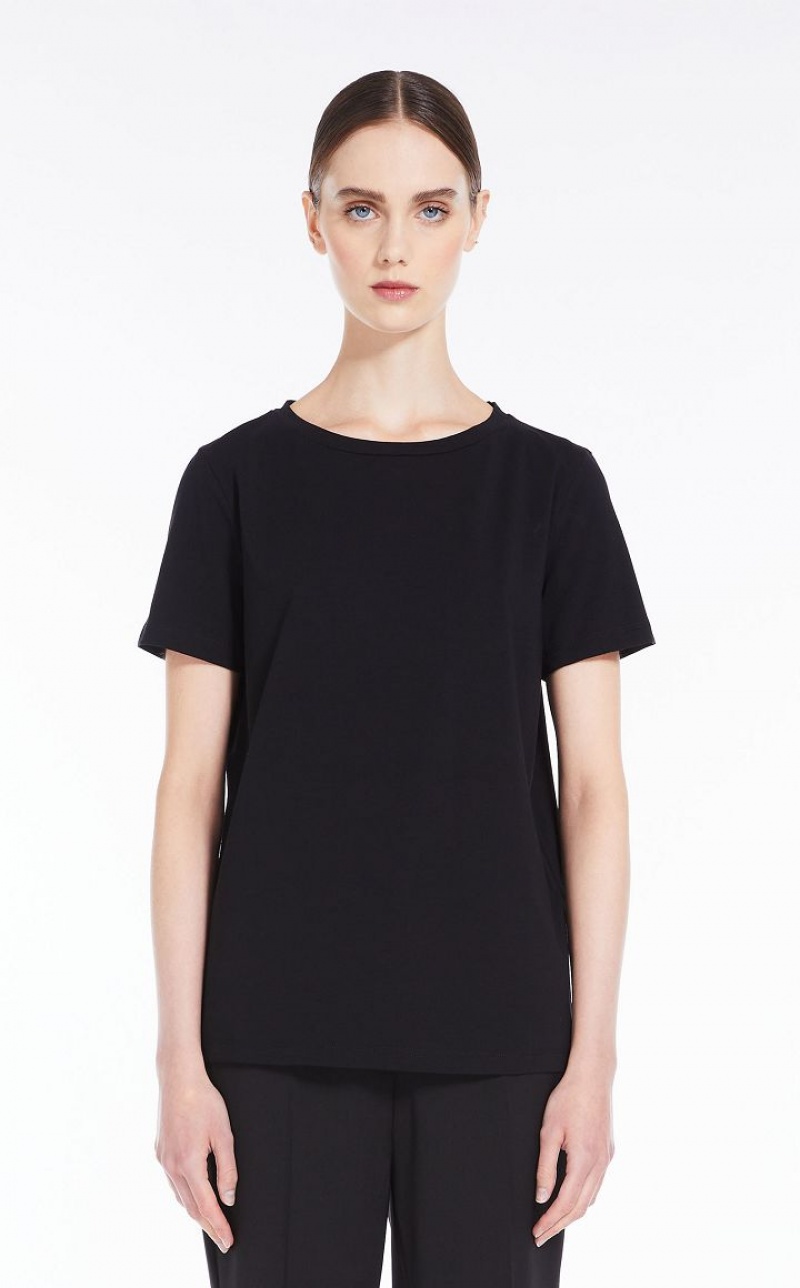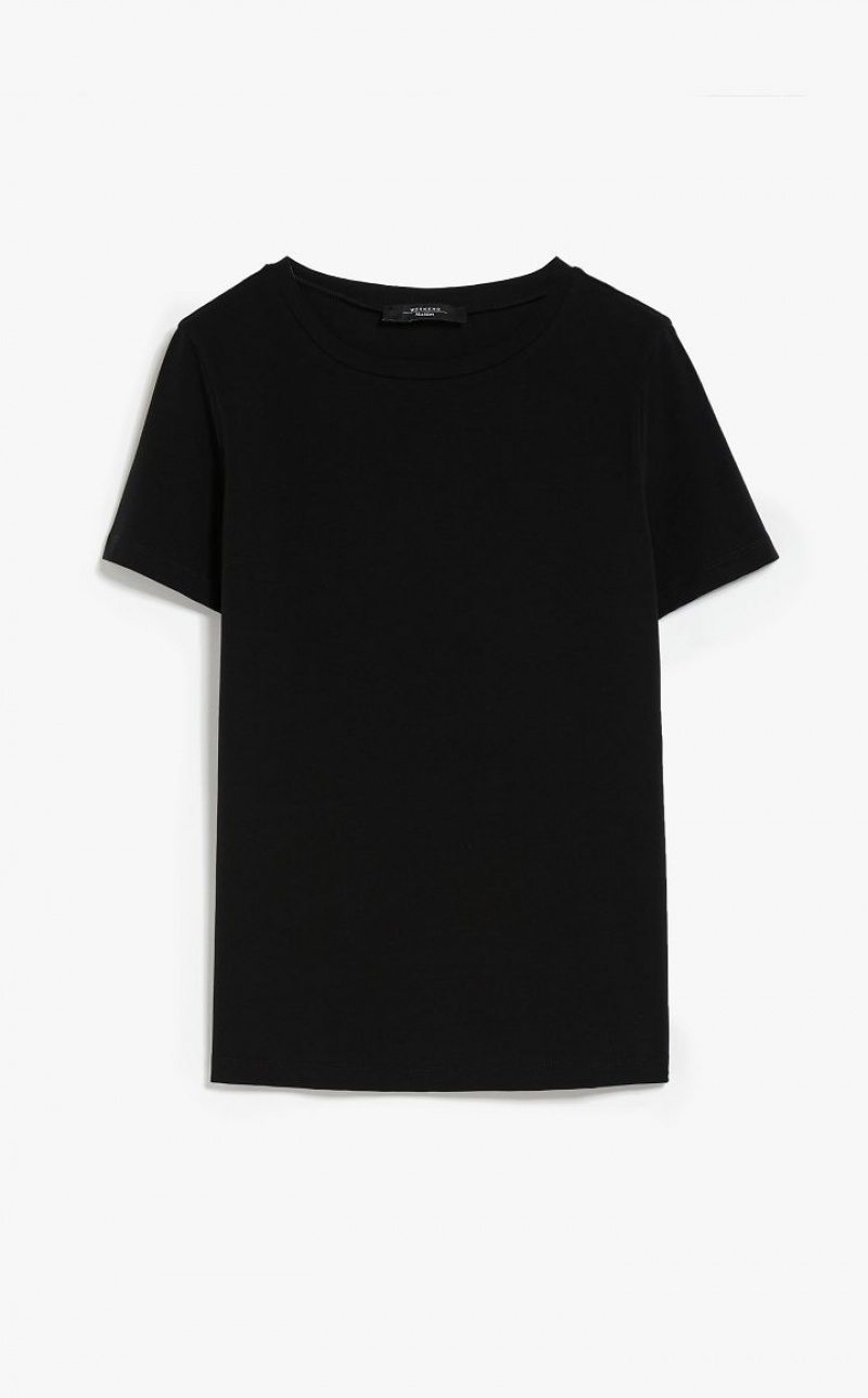 Basic T-shirt in soft stretch cotton jersey. Straight style with round neck, short sleeves and small butterfly logo printed on the back of the neck.