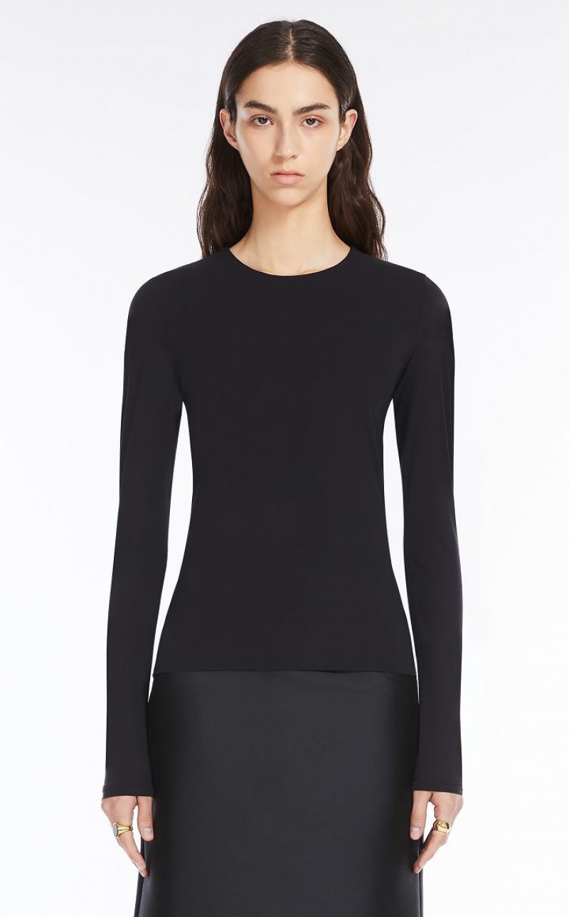 Crew neck T-shirt made of lightweight, snug-fitting jersey fabric. Long sleeves and figure-hugging for a feminine silhouette.