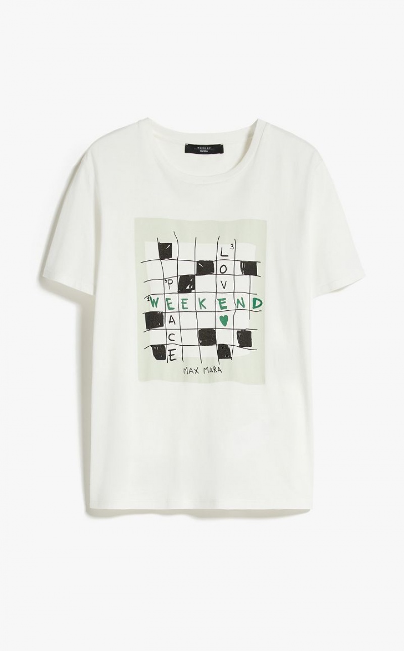 Short-sleeved T-shirt in soft pure cotton jersey. Straight style featuring a printed motif on the front, round neck with rib finish, and small butterfly logo printed on the back.