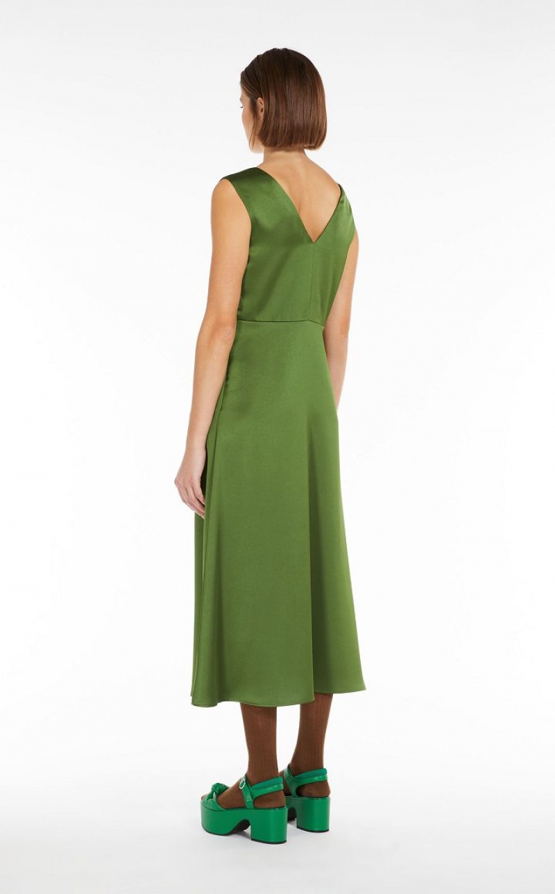 Long sleeveless dress in glossy luxe satin. The silhouette has a highly feminine semi-fitted line, with V neck and loose skirt. Lined.