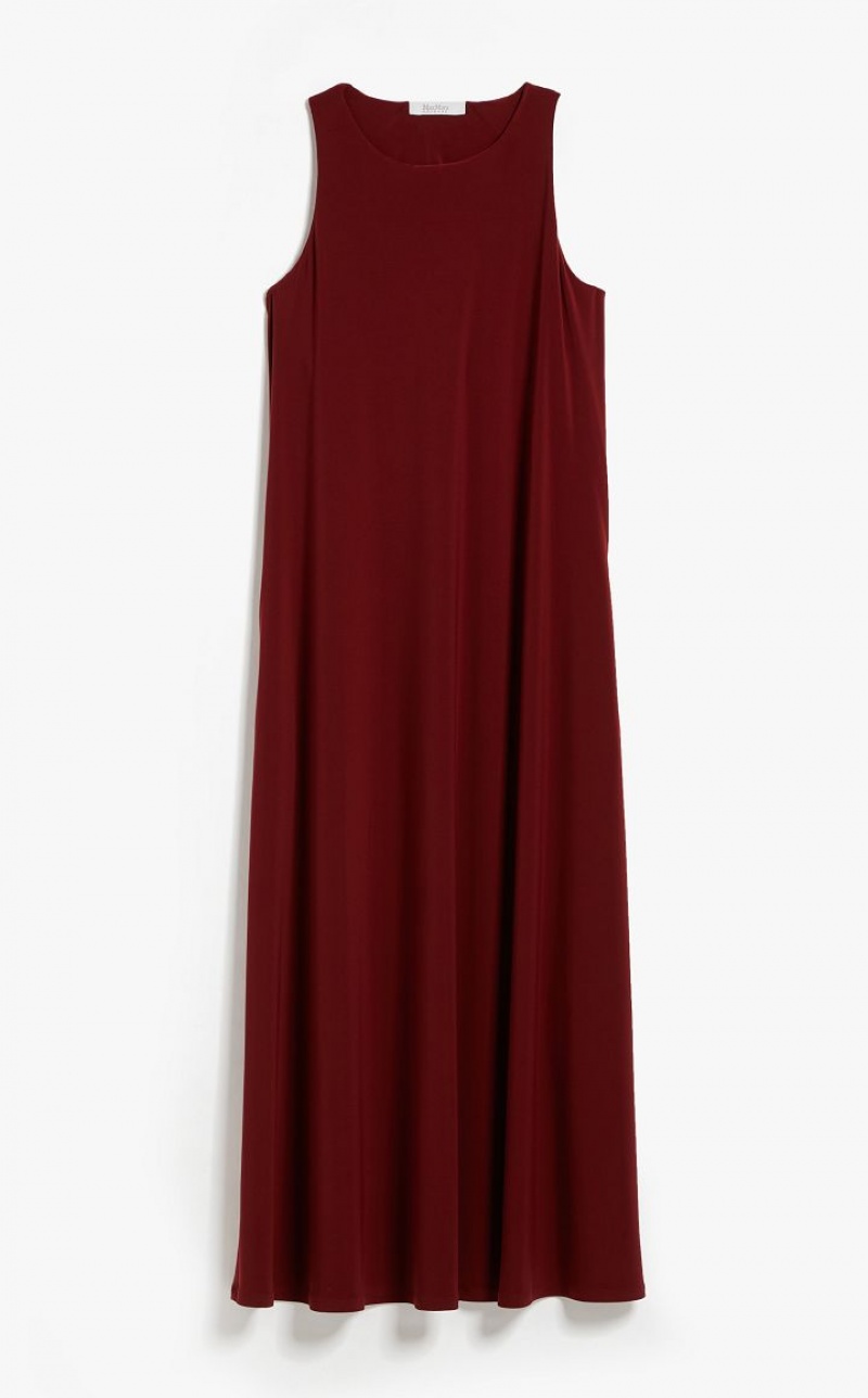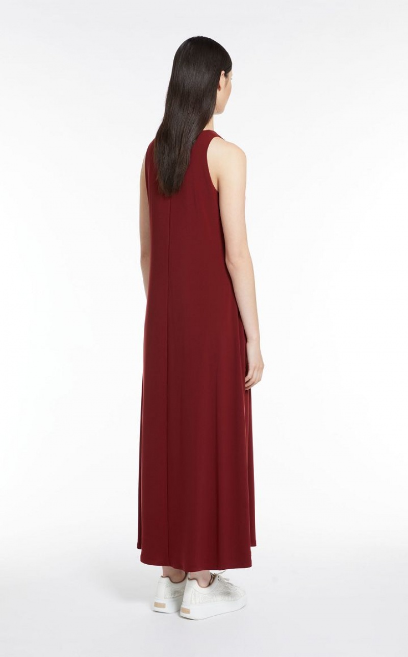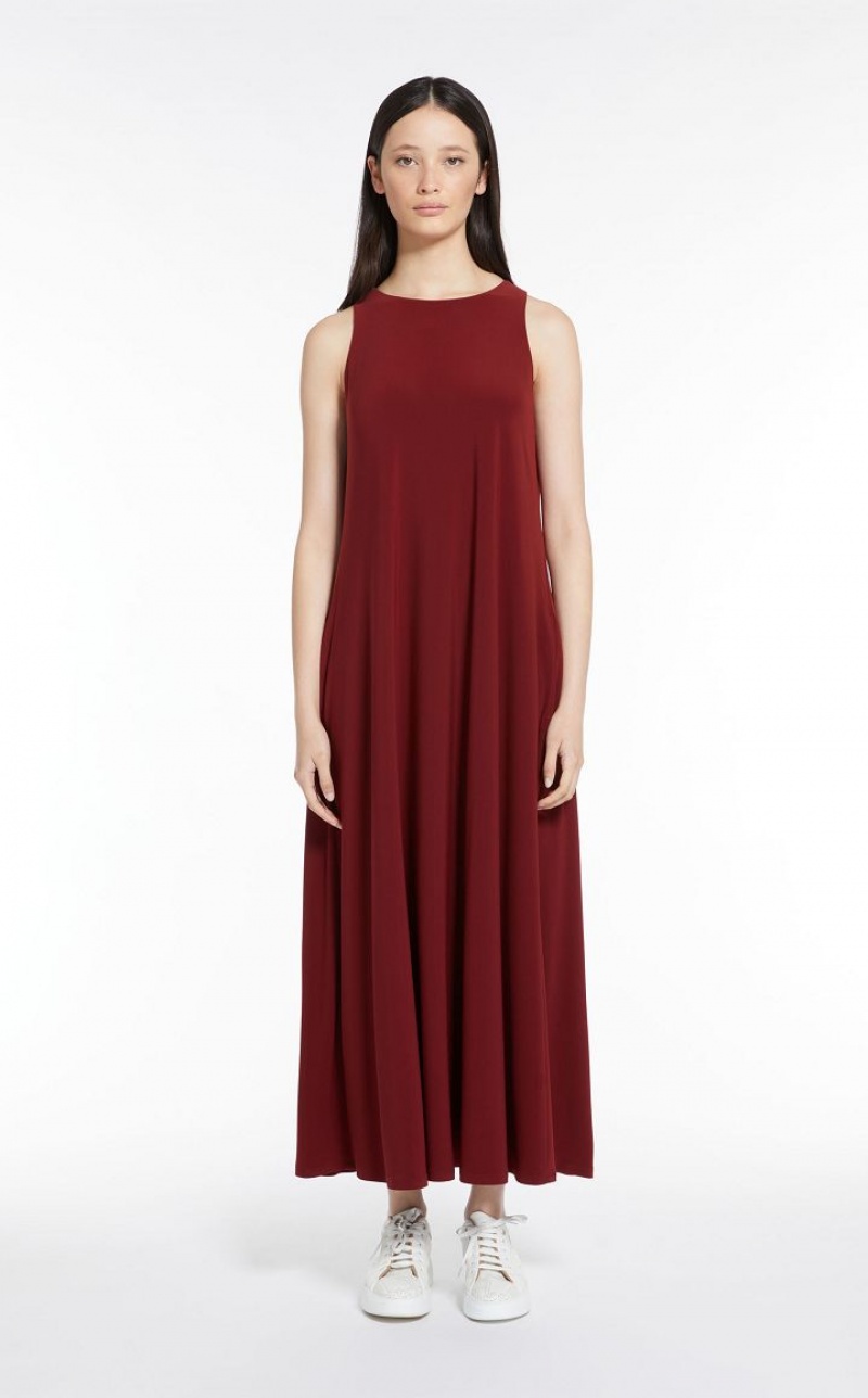 Long sleeveless dress in soft two way stretch jersey fabric. Both the flared silhouette and fluid fabric bestow subtle, feminine movement at the hem.