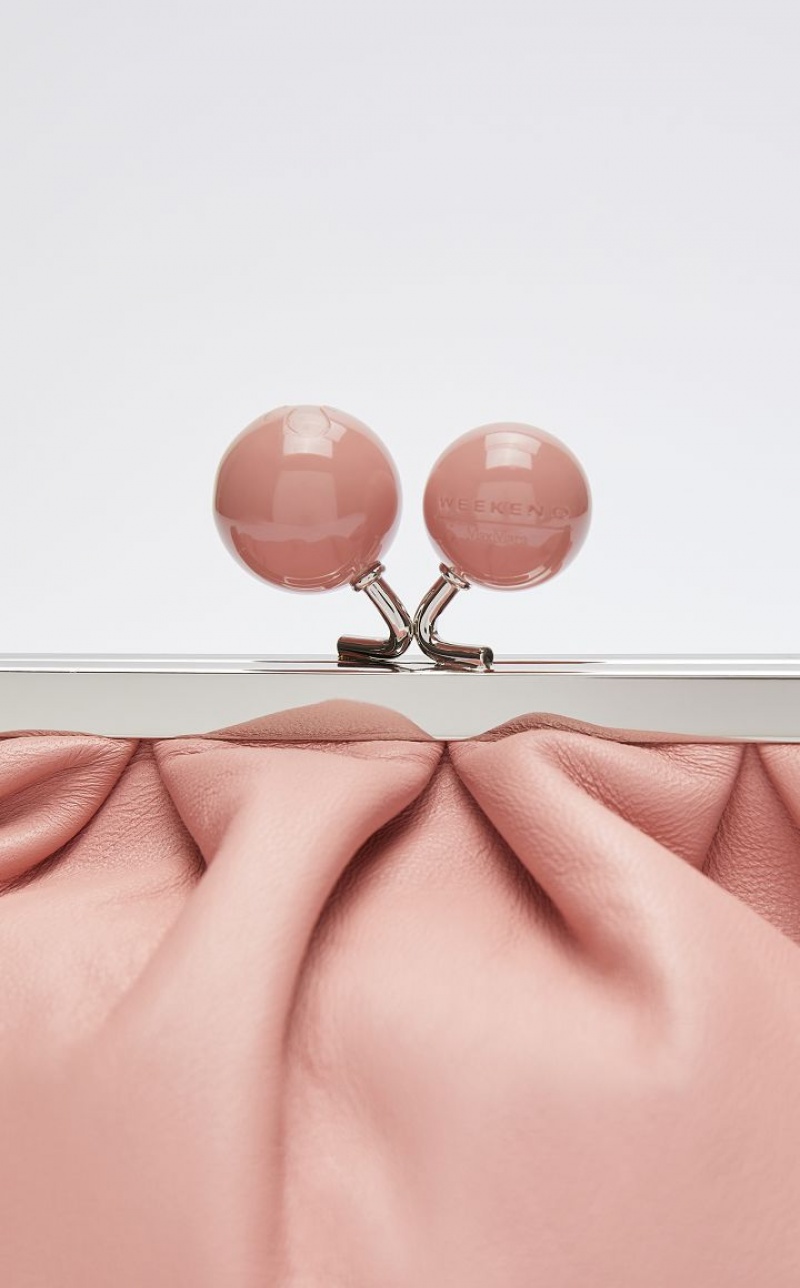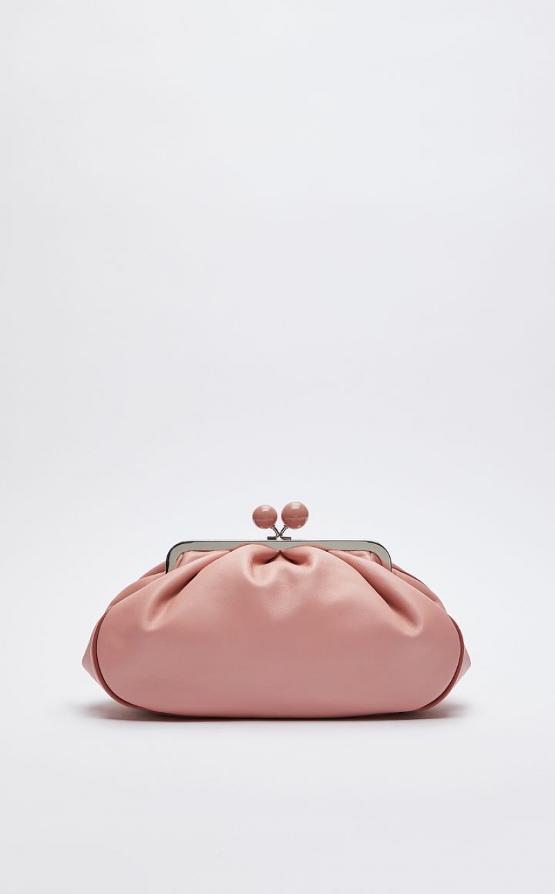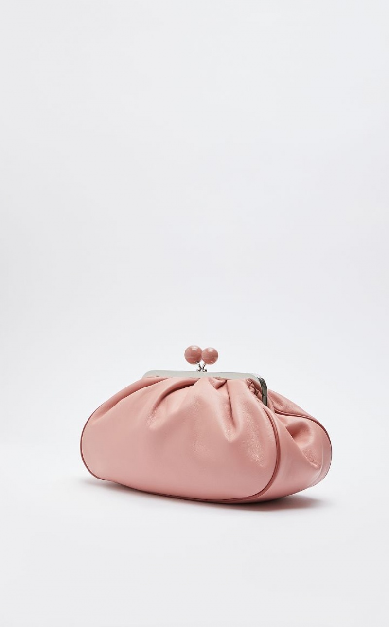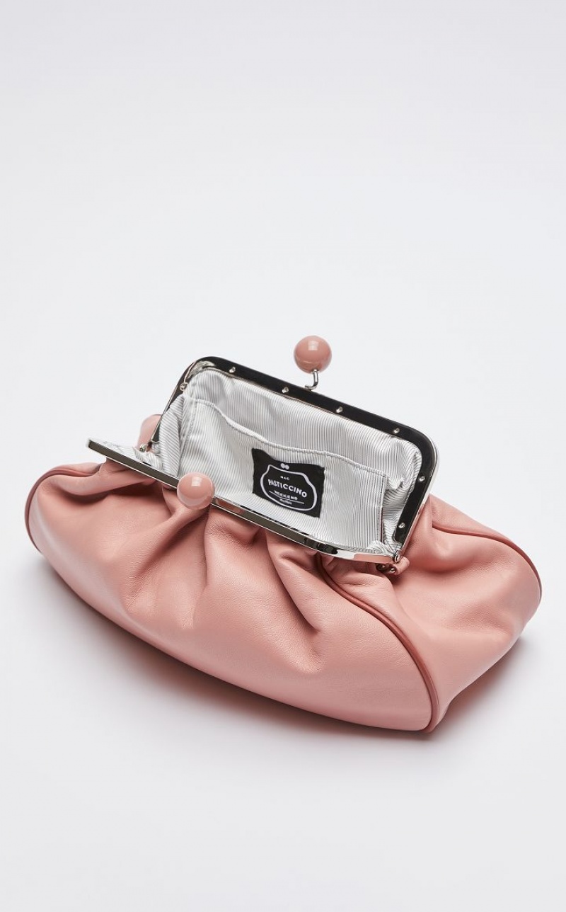 Pasticcino Bag, the super clutch that adds a touch of individuality and charm to your everyday style. Pasticcino Medium in nappa leather, finished with contrast piping that emphasises its lines. Lightly padded to enhance its soft and delicate design, which adapts to the wearer’s silhouette. The detachable double chain and leather strap makes for a versatile style: the ideal crossbody or shoulder bag to accessorise an on-trend outfit. Finished with resin spheres and a custom label on the inside. Size: 31 x 13 x 21 cm.