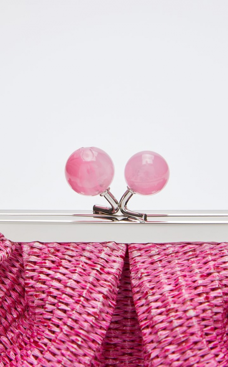 The Small Pasticcino Bag is the super clutch that adds a touch of personal charm to your everyday style. Made of cotton raffia, with lined interior. The detachable chain strap with leather detail makes for a versatile style: wear it as a crossbody or handbag to accessorise an on trend outfit. Finished with resin spheres and custom label on the inside. Its deconstructed silhouette and deliberately oversized proportions make it perfect to meet your every need.