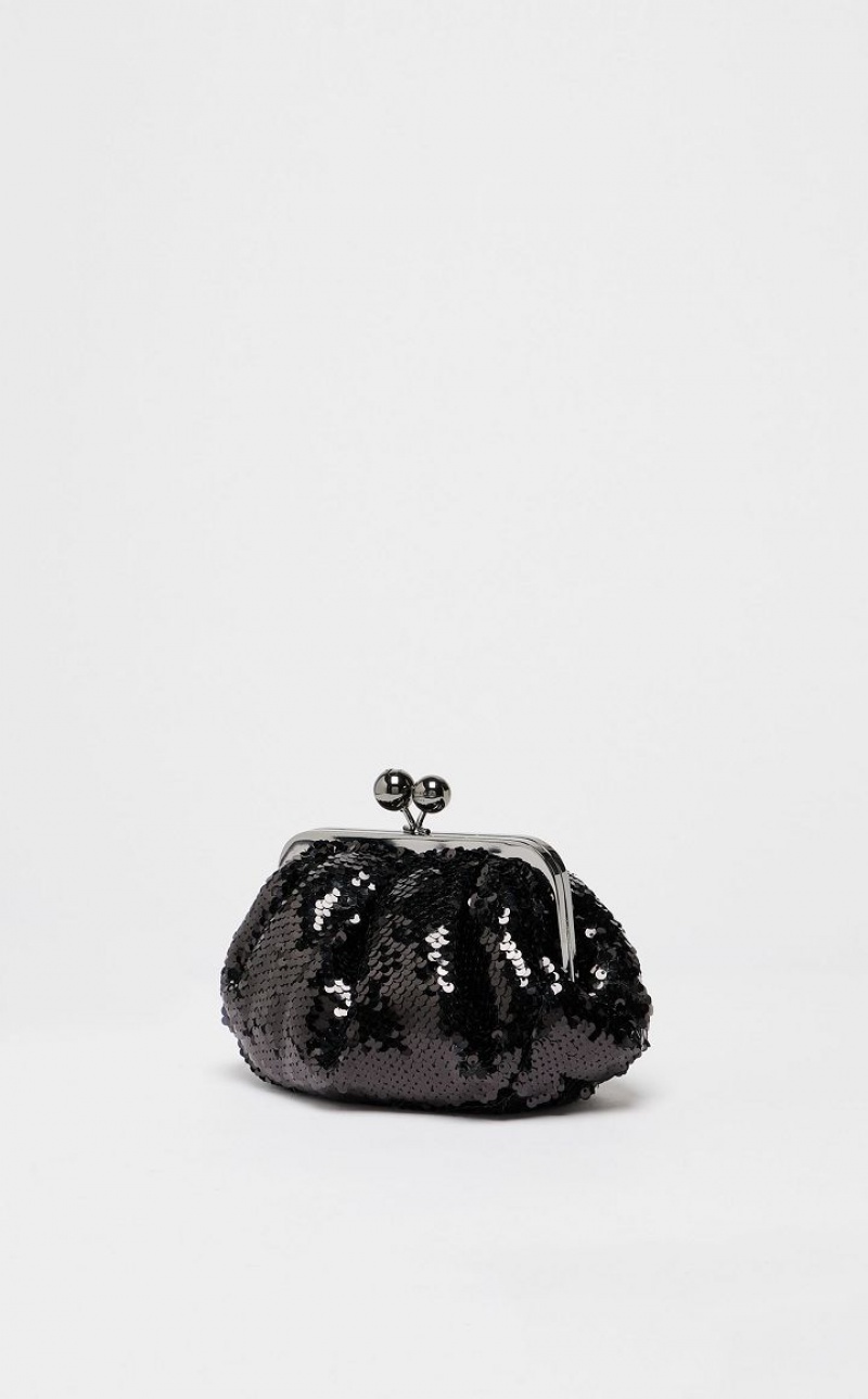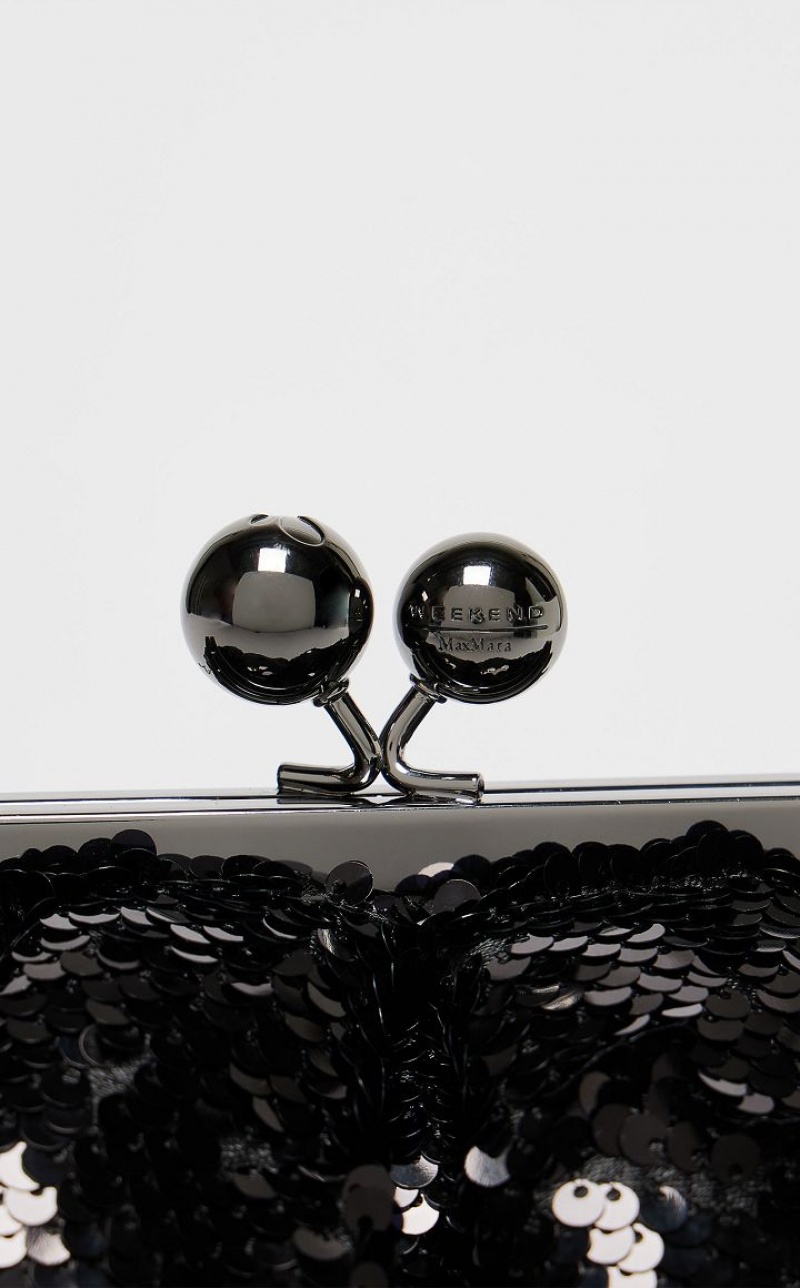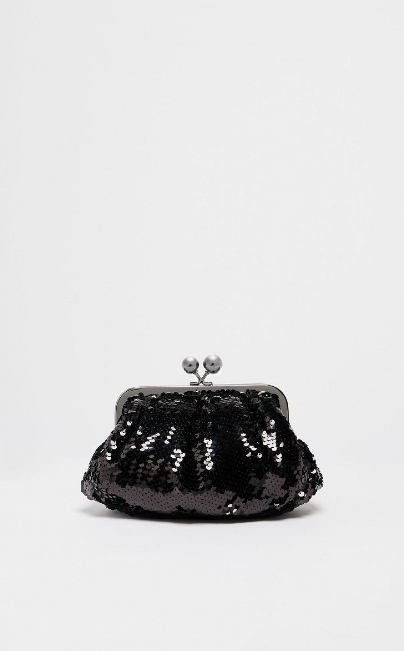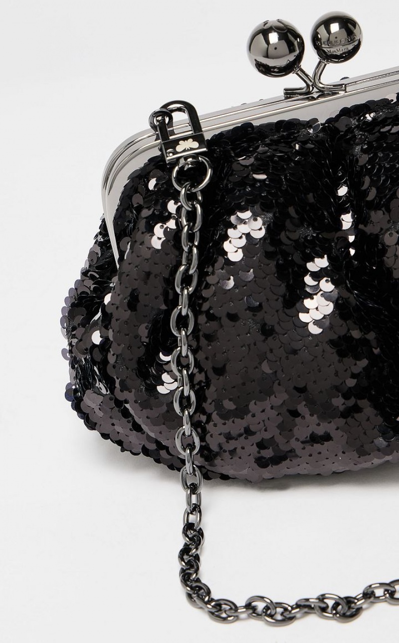 The Pasticcino Bag is the super clutch that adds a touch of personal charm to your everyday style. Pasticcino Small in technical fabric, entirely embroidered with two-tone sequins whose colour changes depending on their direction. Lightly padded to enhance its soft and delicate design, which adapts to the wearer’s silhouette. The detachable double chain and leather strap makes for a versatile style: the ideal crossbody or shoulder bag to accessorise an on-trend outfit. Finished with resin spheres and a custom label on the inside. Size: 19 x 10 x 15 cm.