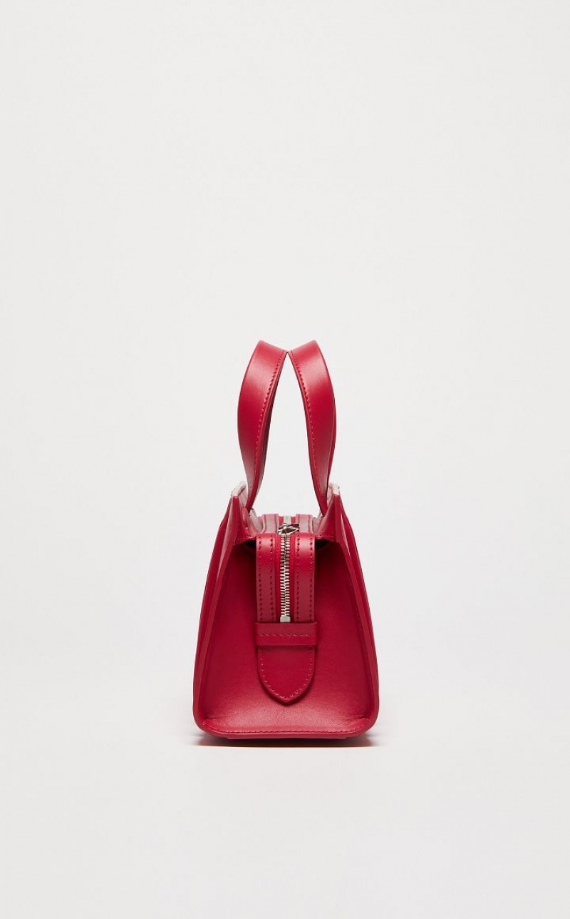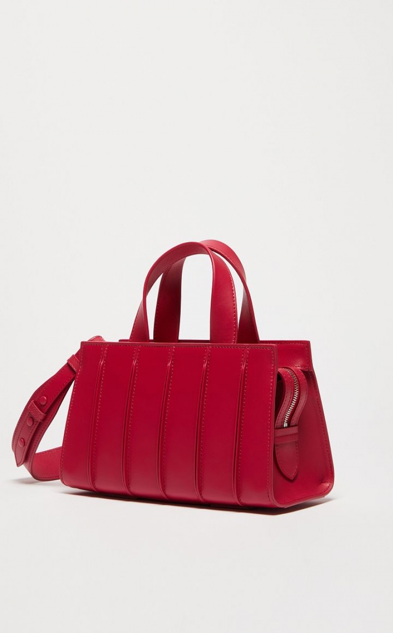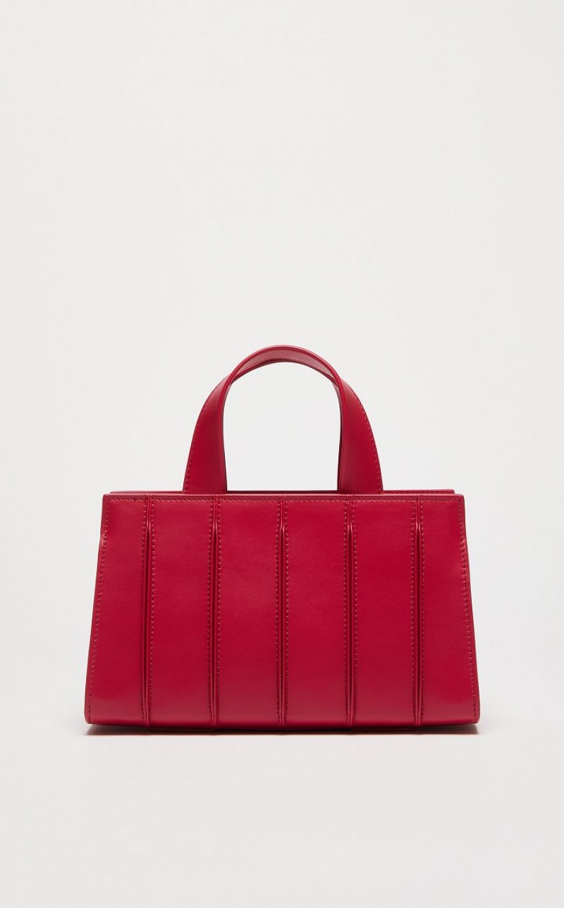 Whitney Bag made of soft, smooth leather, featuring double handles and a detachable, adjustable strap. Plated metallic details. A divider separates two zipped inner compartments lined in microfibre with a soft texture. Measurements: 26 x 12 x 15 cm.